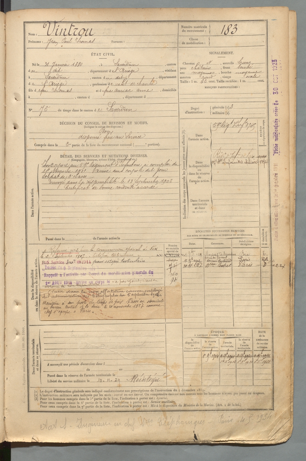 | Vintrou | Jean Paul Thomas | FOIX | 129 W 2 | 1900 | Saverdun | Saverdun | 183 |