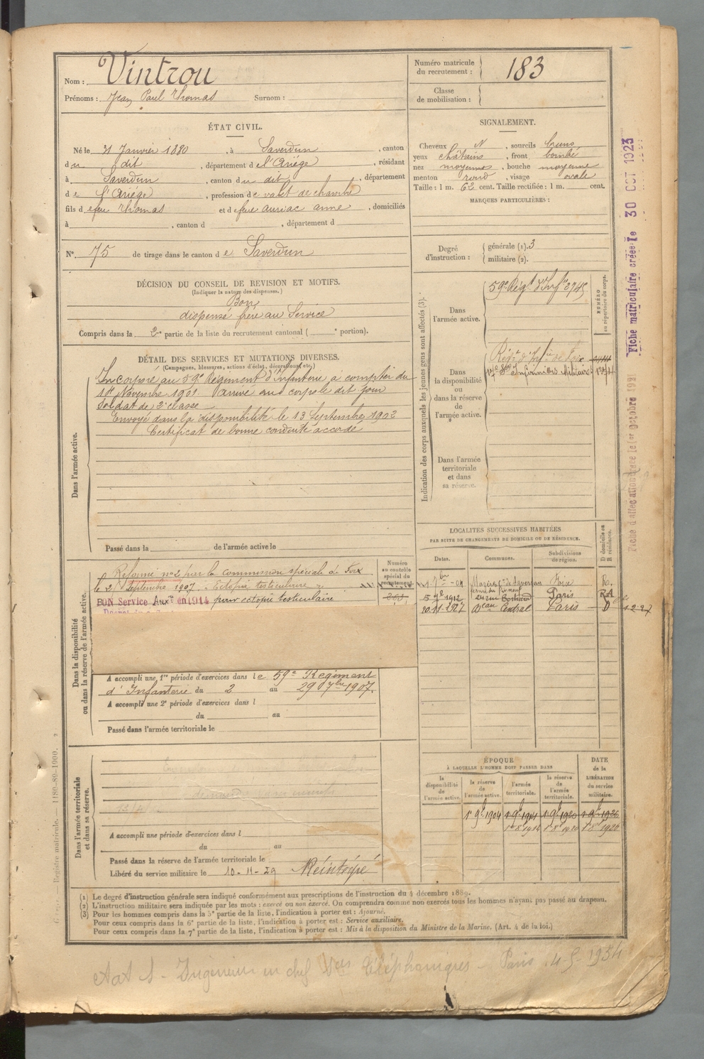 | Cambus | Joseph | FOIX | 129 W 2 | 1900 | Durban-sur-Arize | Bastide-de-Bousignac (La) | 187 |