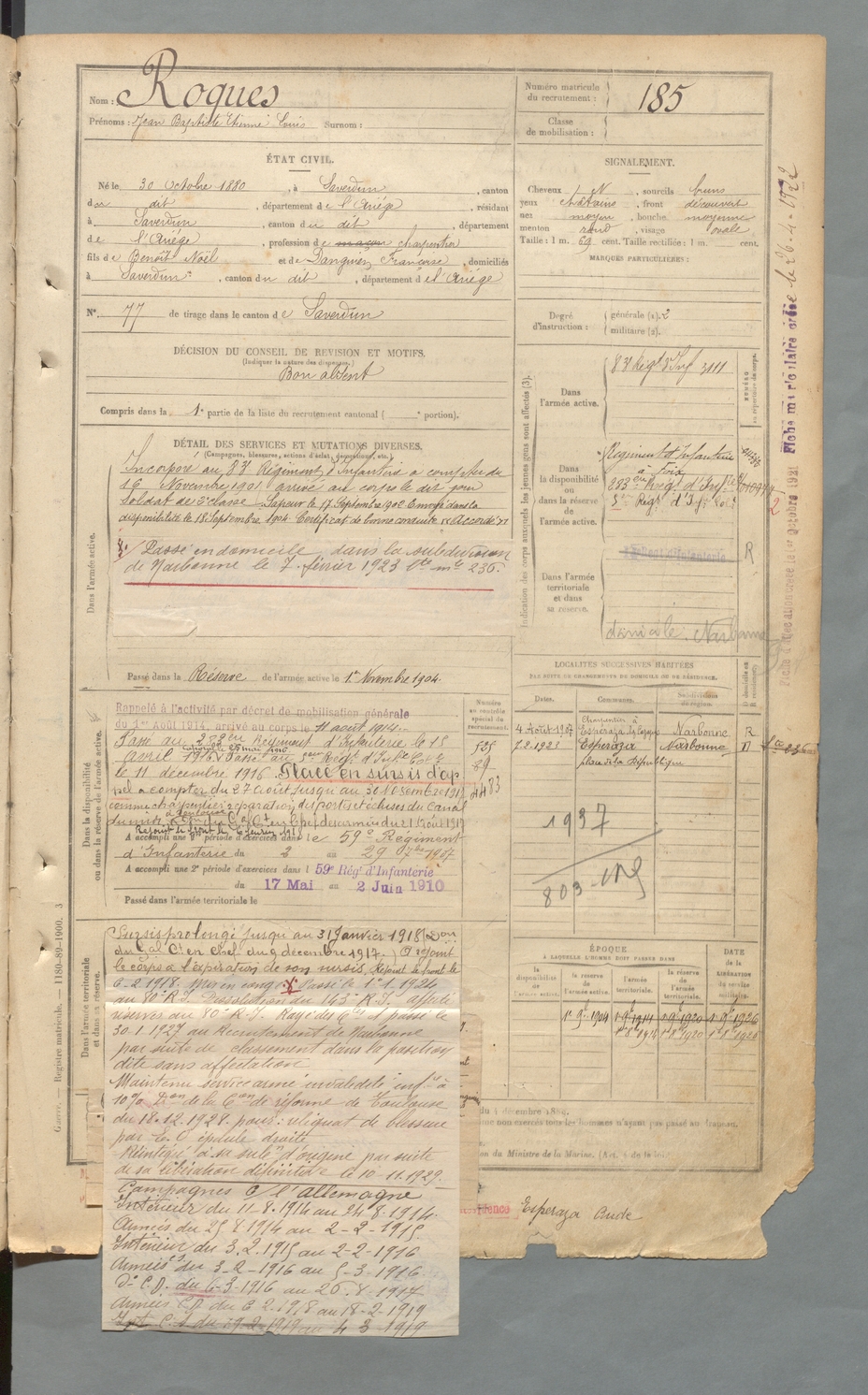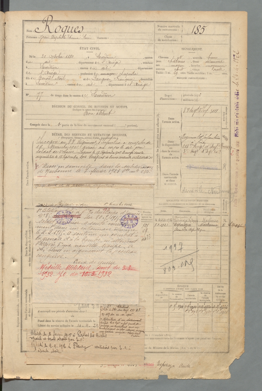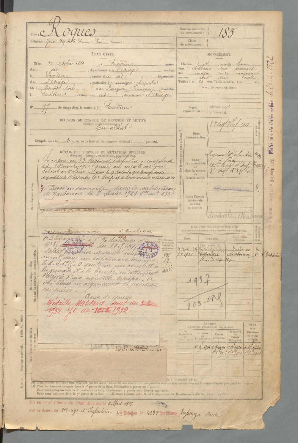 | Roques | Jean Baptiste Etienne Louis | FOIX | 129 W 2 | 1900 | Saverdun | Saverdun | 185 |
