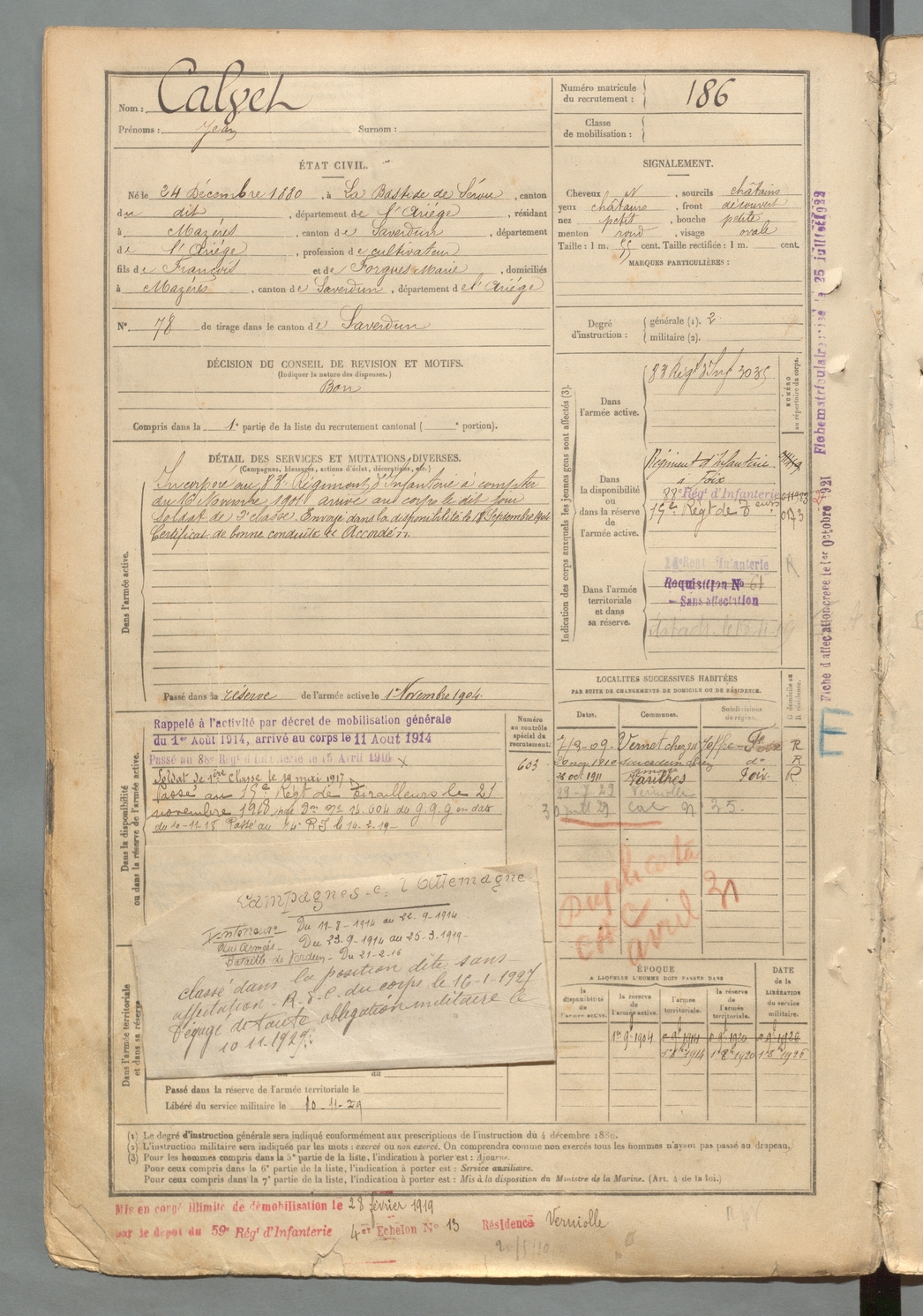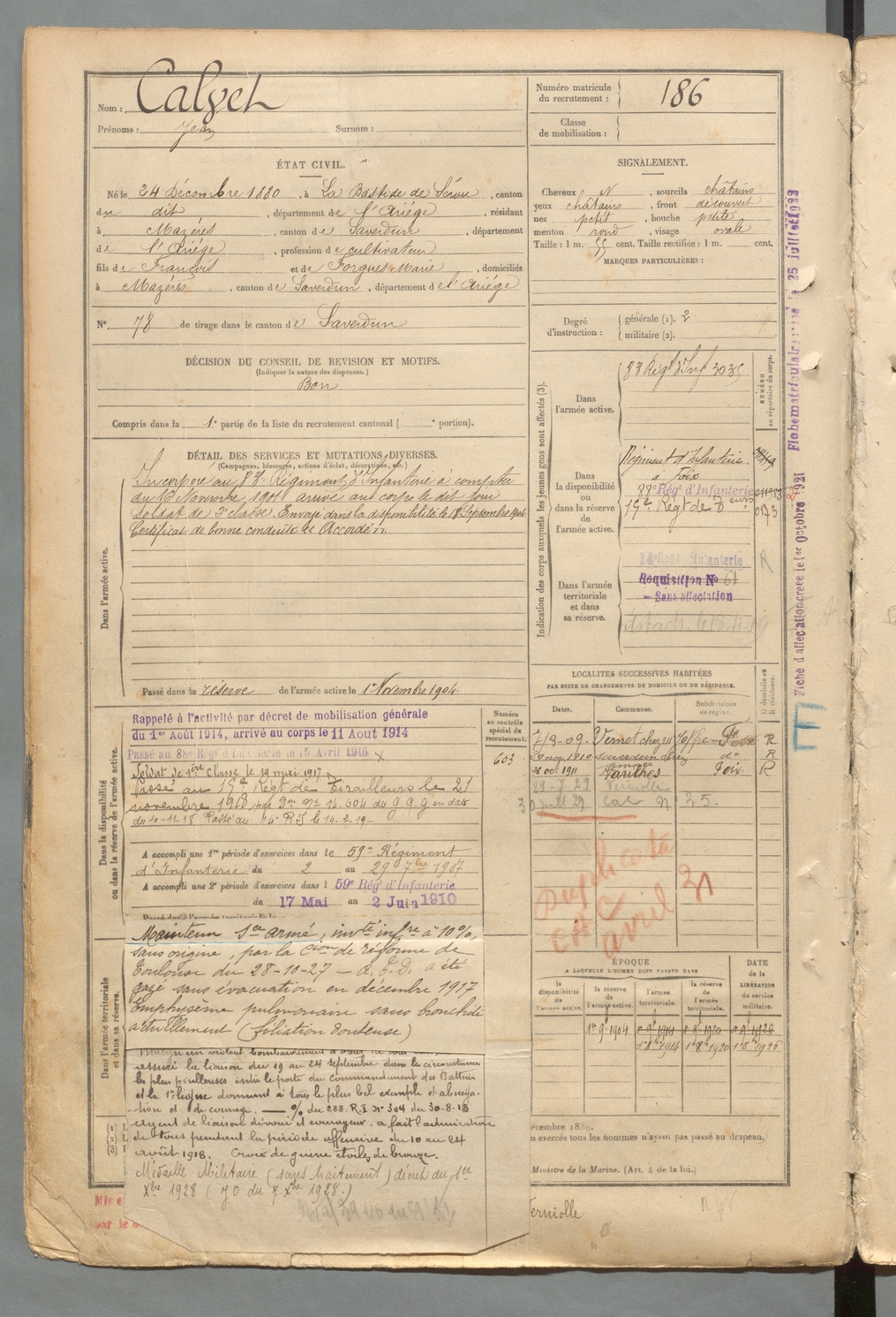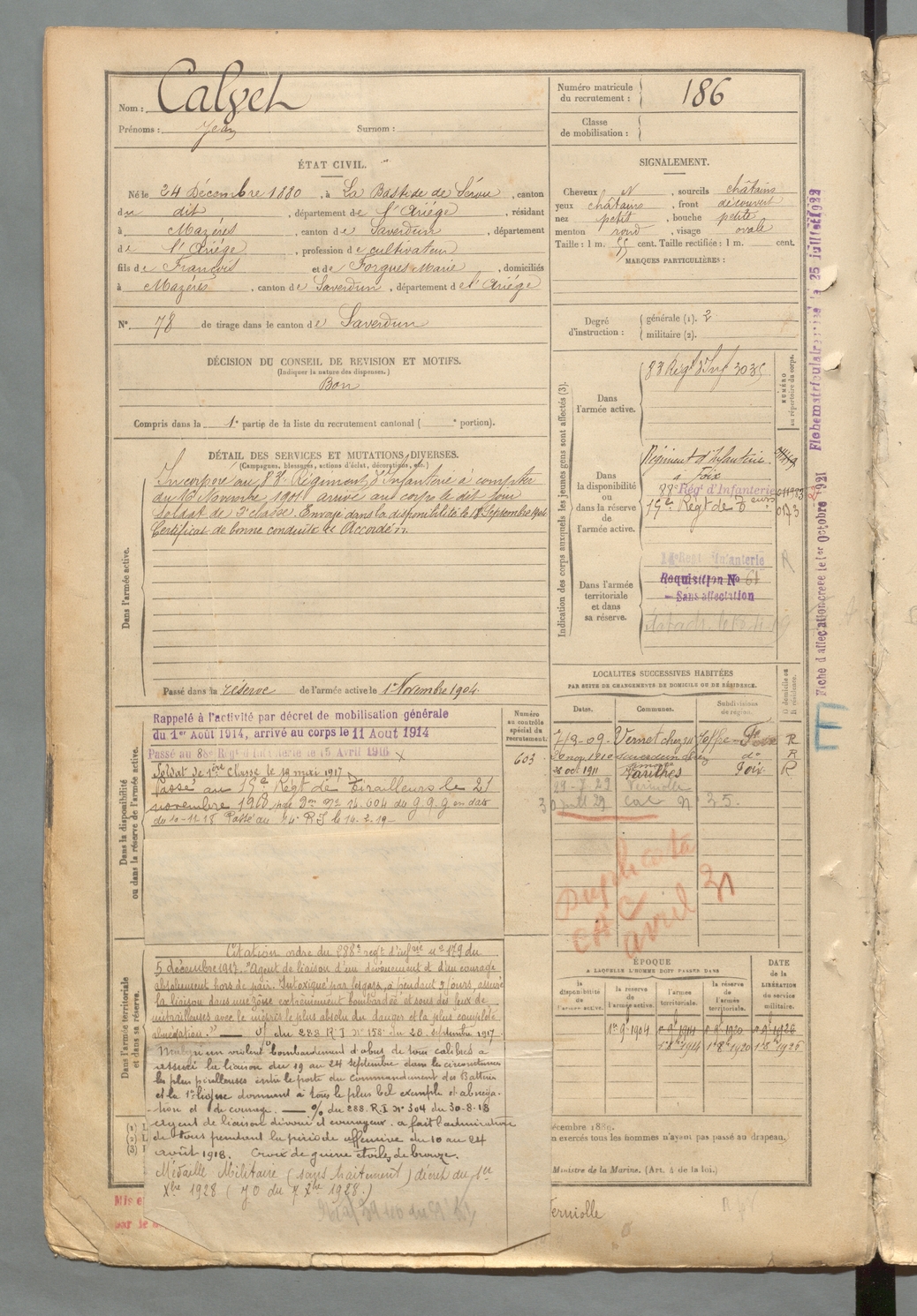 | Calvet | Jean | FOIX | 129 W 2 | 1900 | Bastide-de-Sérou (La) | Mazères | 186 |