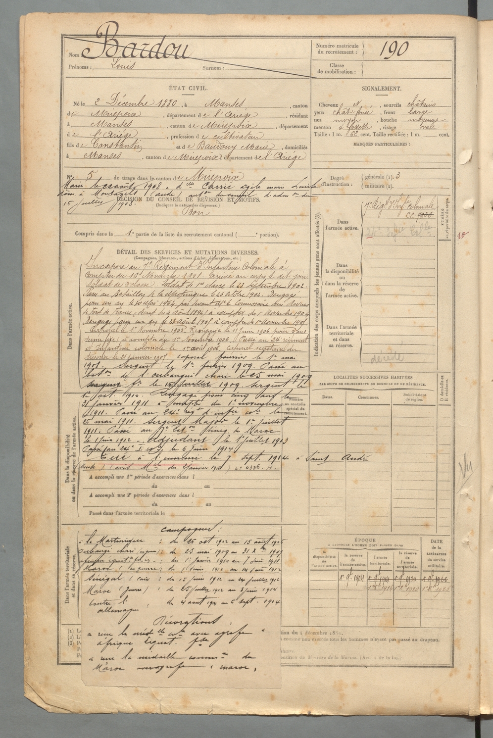 | Bardou | Louis | FOIX | 129 W 2 | 1900 | Manses | Manses | 190 |