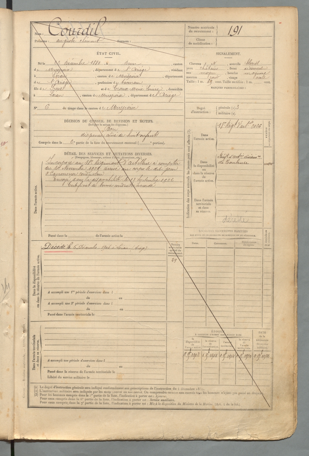 | Courdil | Auguste Clément | FOIX | 129 W 2 | 1900 | Dun | Léran | 191 |