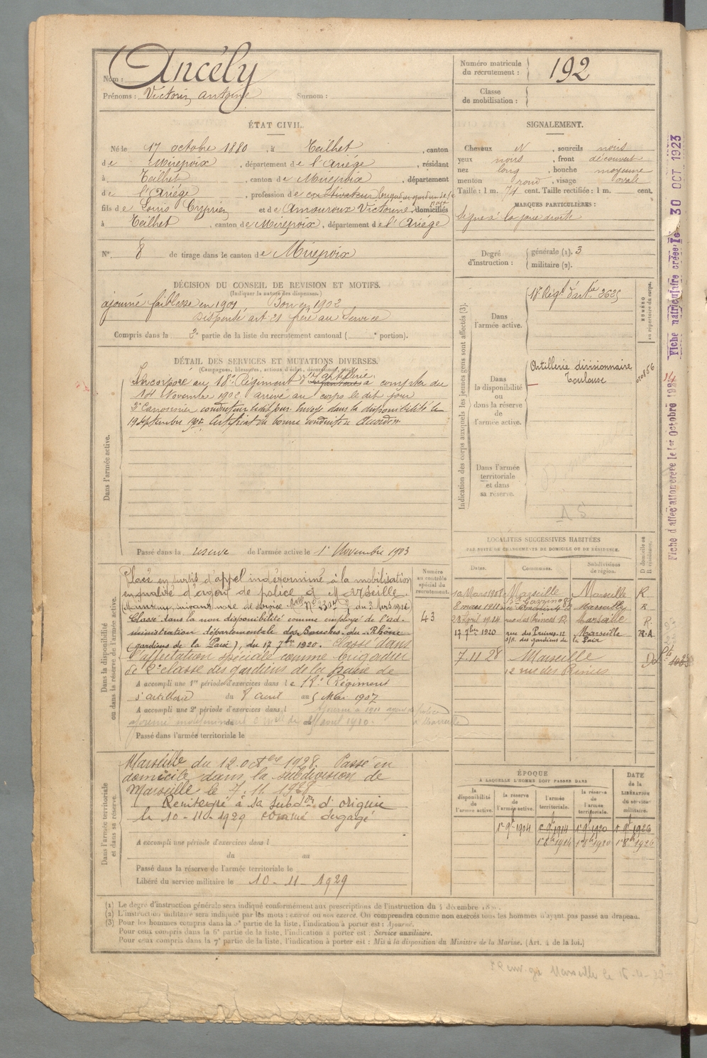 | Ancély | Victorin Antoine | FOIX | 129 W 2 | 1900 | Teilhet | Teilhet | 192 |
