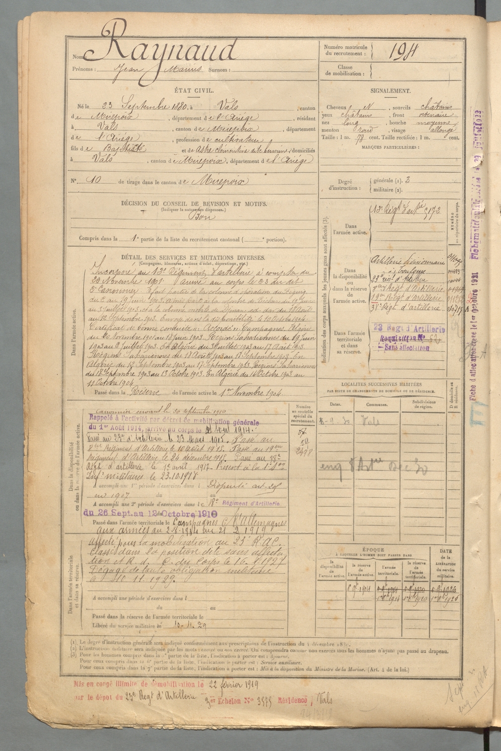 | Raynaud | Jean Marius | FOIX | 129 W 2 | 1900 | Vals | Vals | 194 |