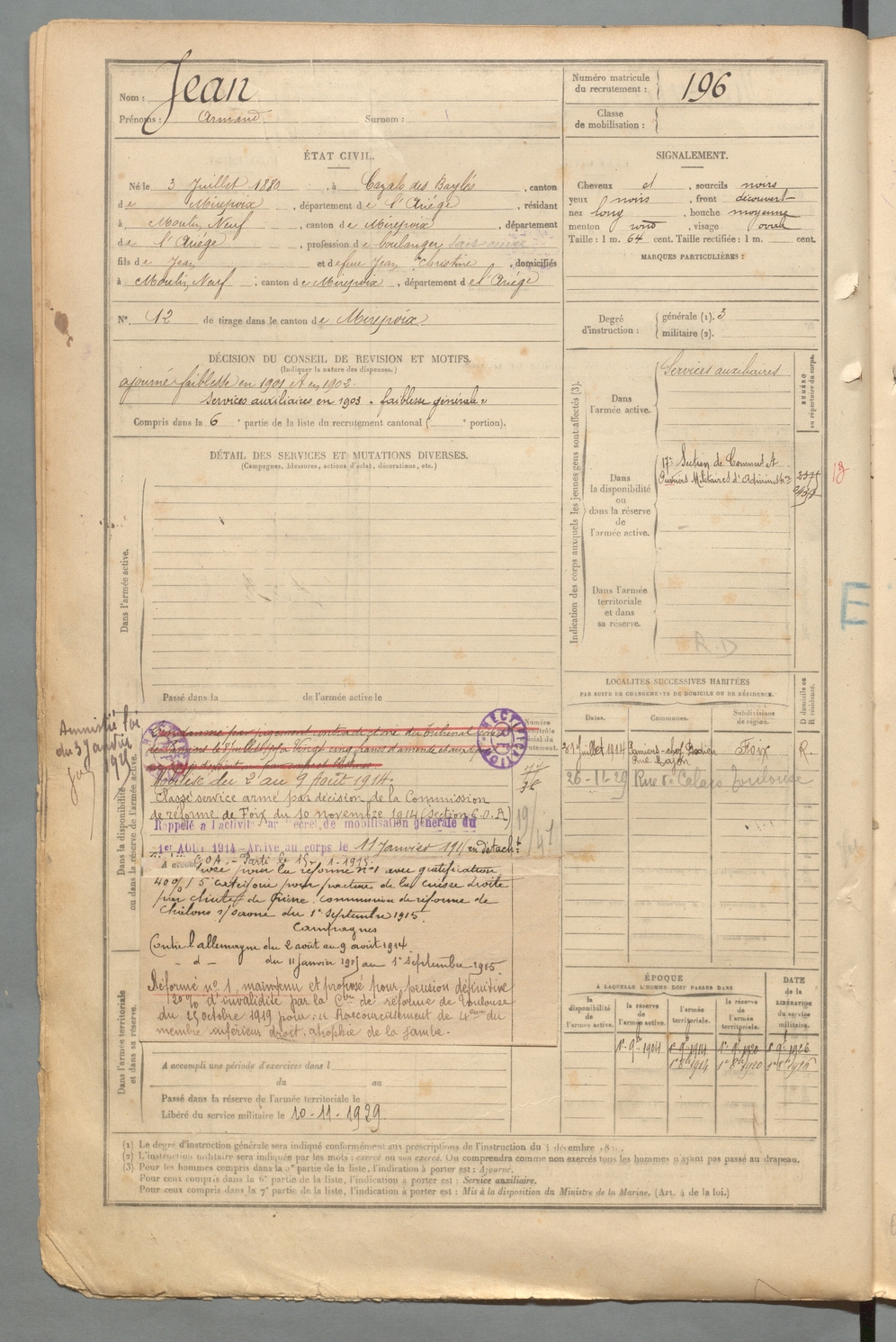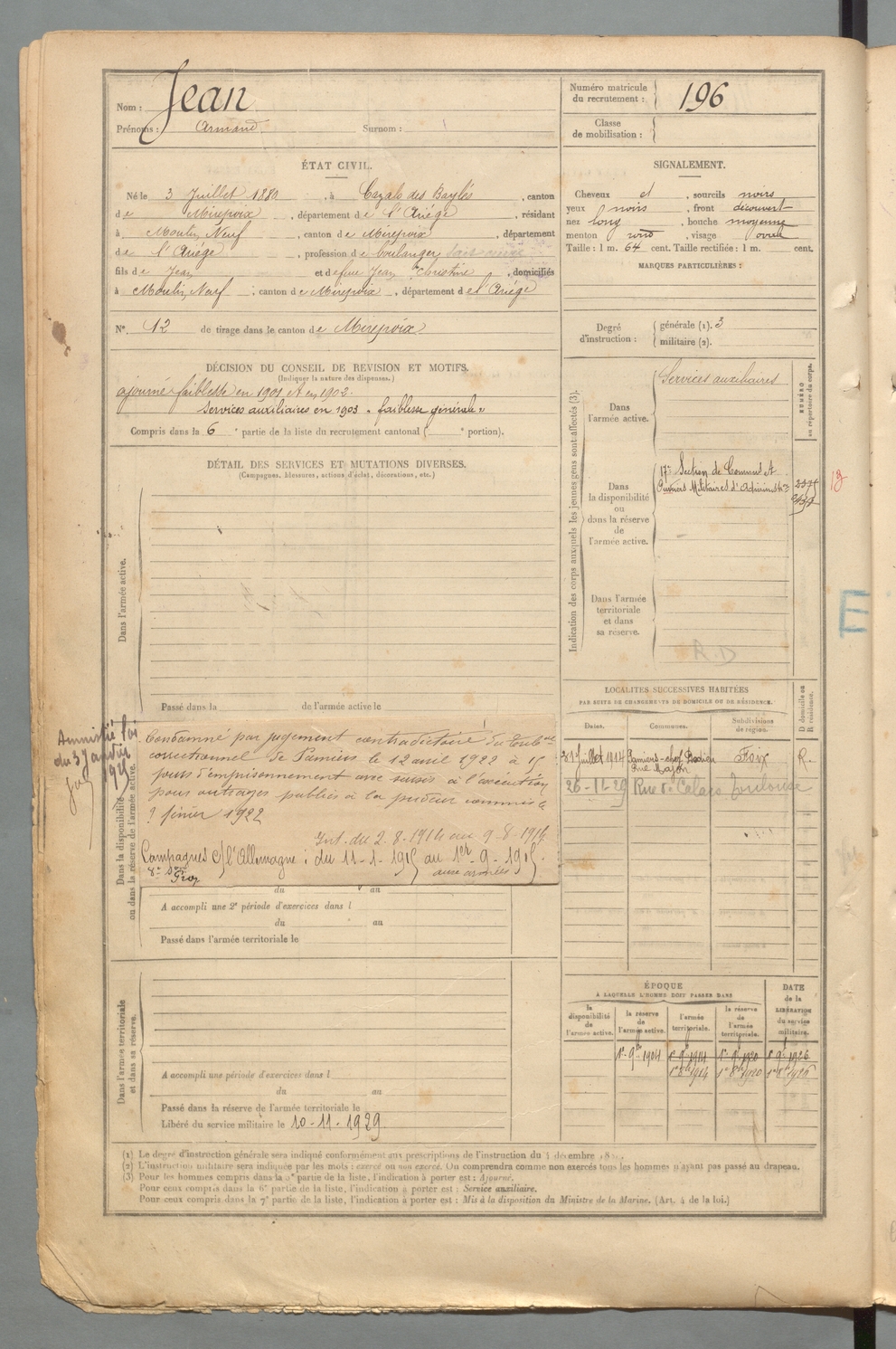 | Jean | Armand | FOIX | 129 W 2 | 1900 | Cazals-des-Bayles | Moulin-Neuf | 196 |