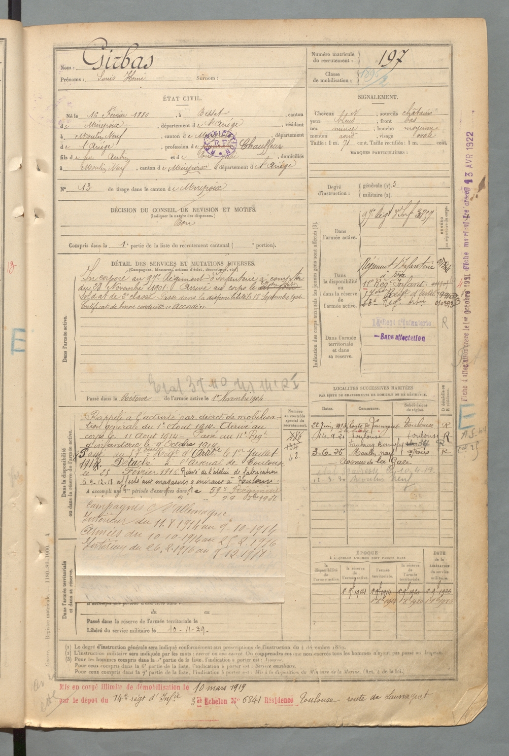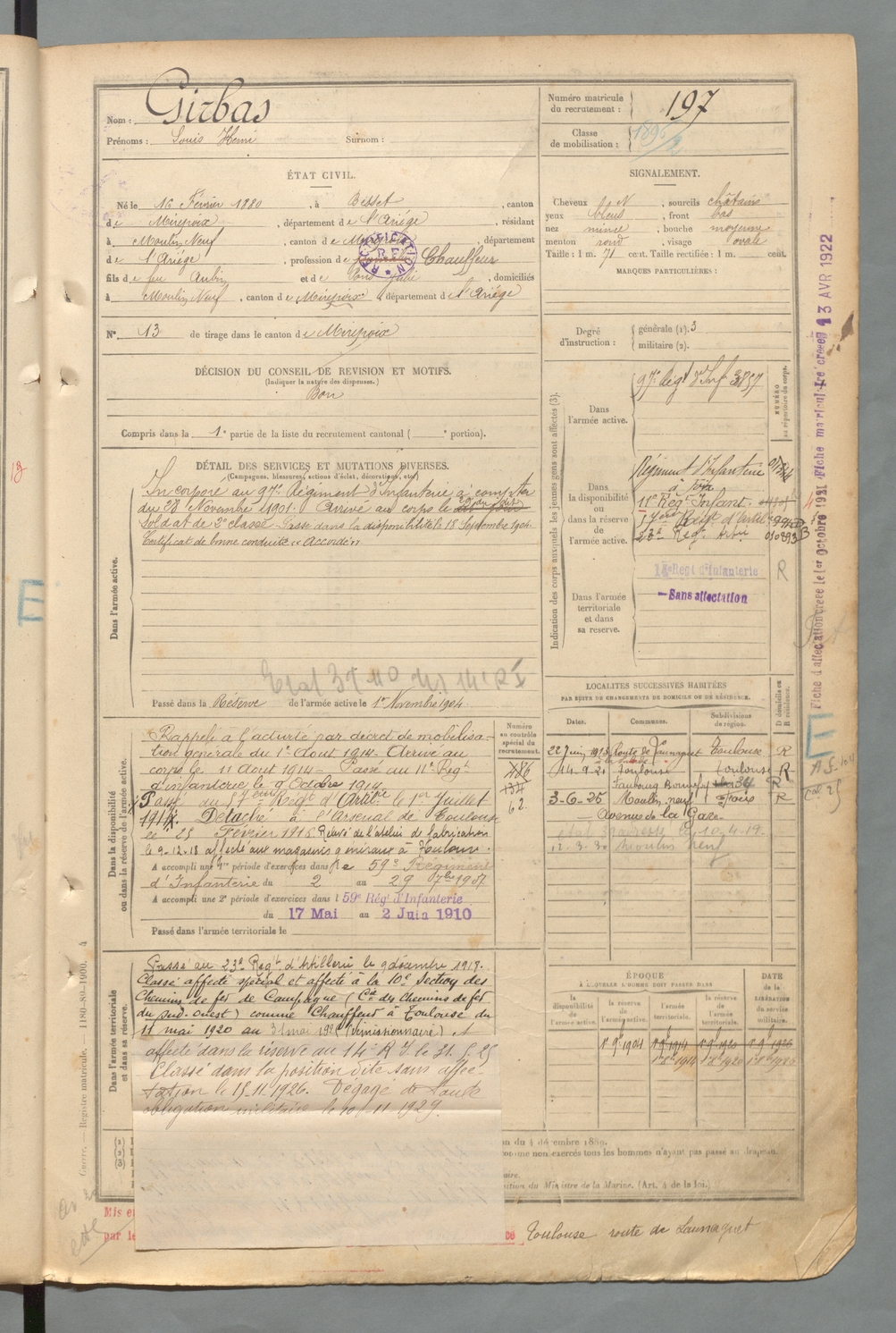 | Girbas | Louis Henri | FOIX | 129 W 2 | 1900 | Besset | Moulin-Neuf | 197 |