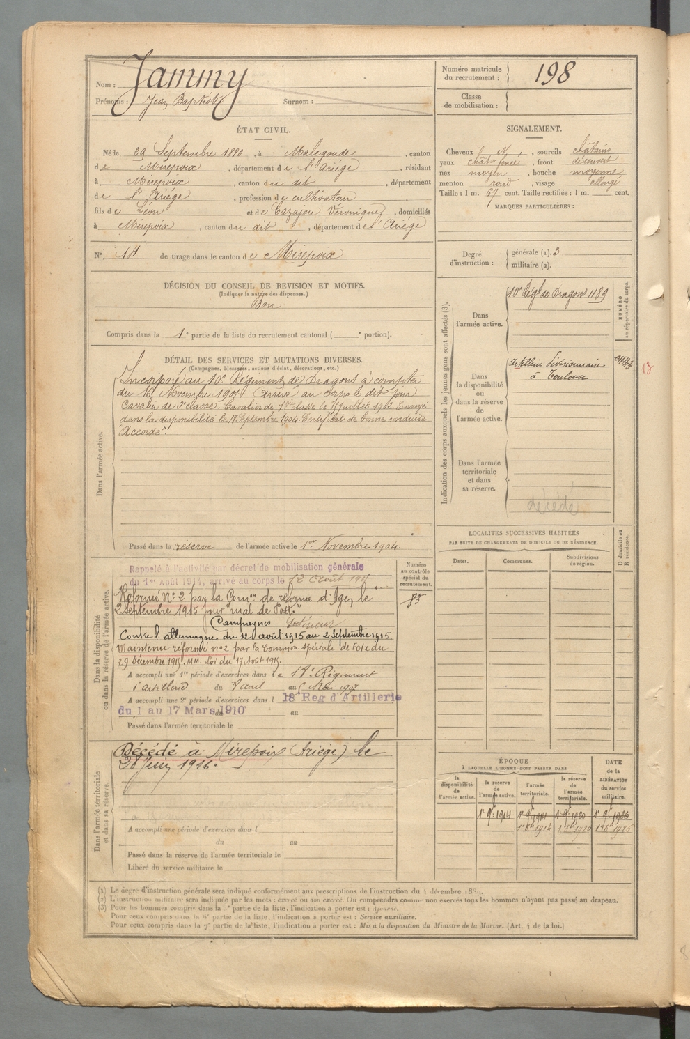 | Jammy | Jean Baptiste | FOIX | 129 W 2 | 1900 | Malegoude | Mirepoix | 198 |