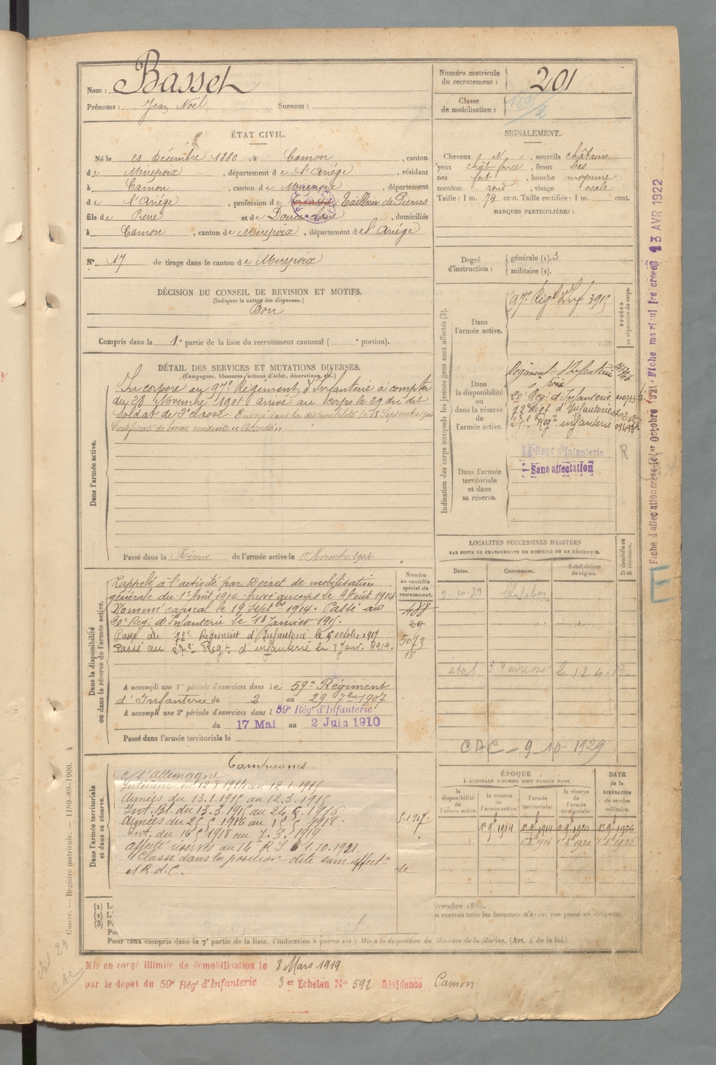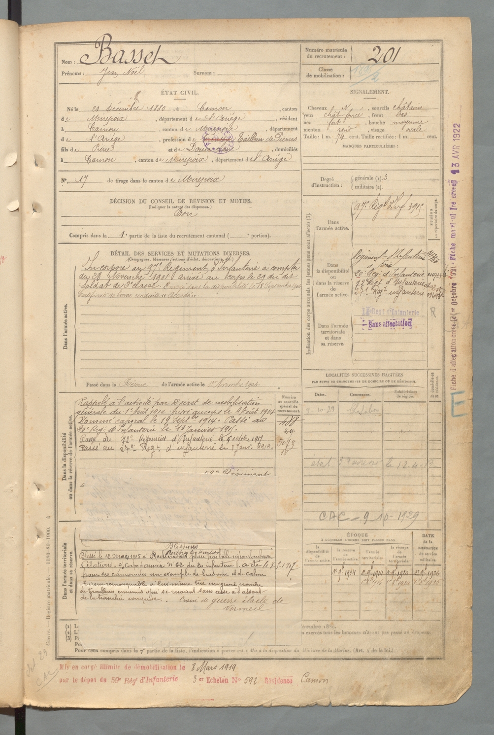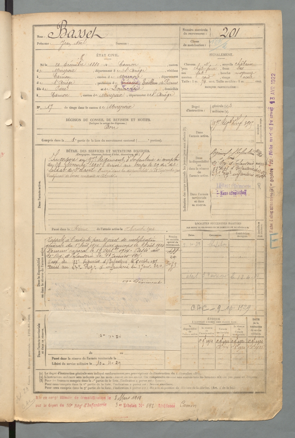 | Basset | Jean Noël | FOIX | 129 W 2 | 1900 | Camon | Camon | 201 |