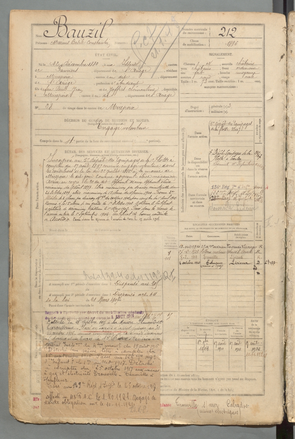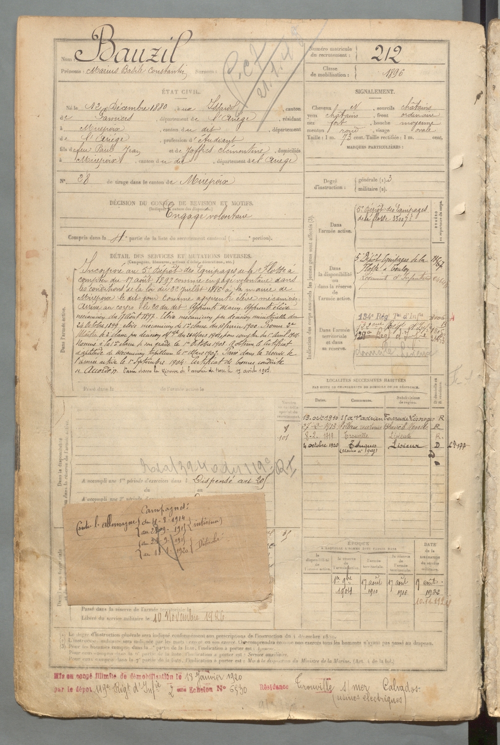| Bauzil | Marius Basile Constantin | FOIX | 129 W 2 | 1900 | Issards (Les) | Mirepoix | 212 |