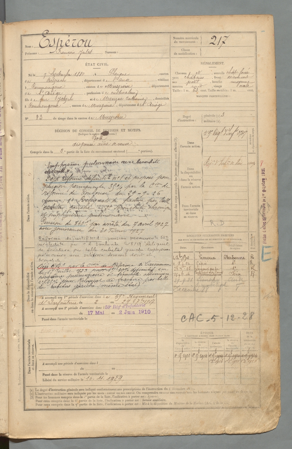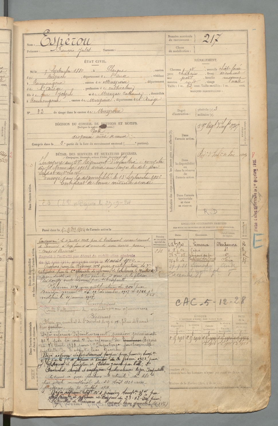 | Espérou | François Jules | FOIX | 129 W 2 | 1900 | Plaigne | Roumengoux | 217 |
