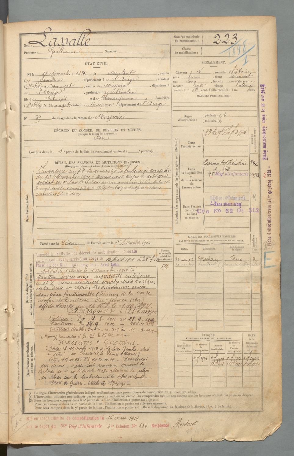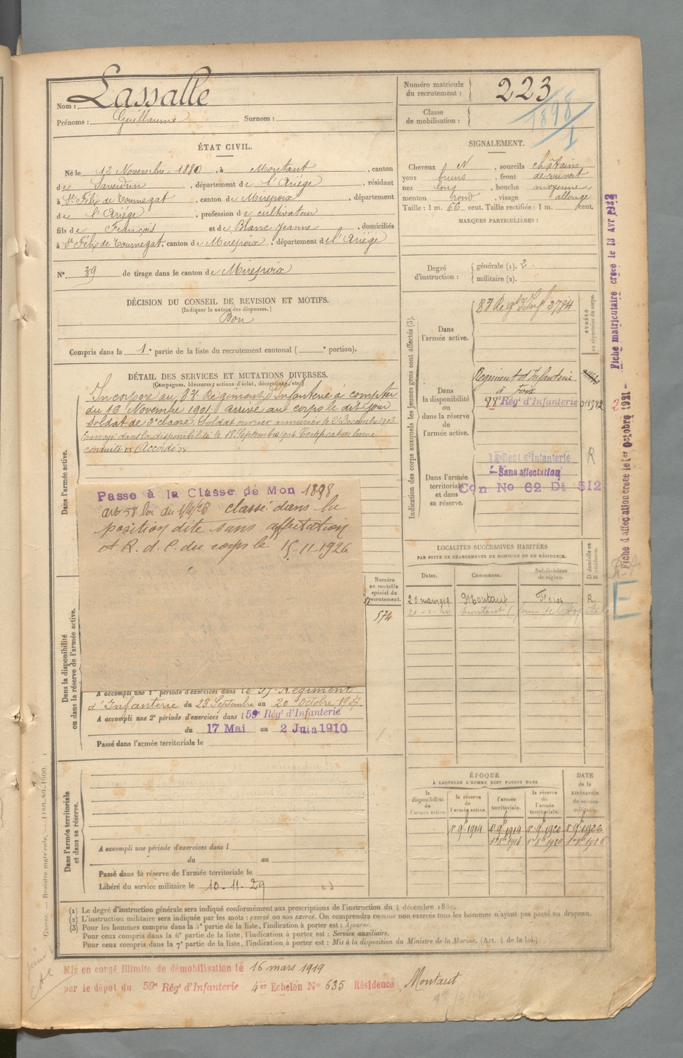 | Lassalle | Guillaume | FOIX | 129 W 2 | 1900 | Montant | Saint-Félix-de-Tournegat | 223 |