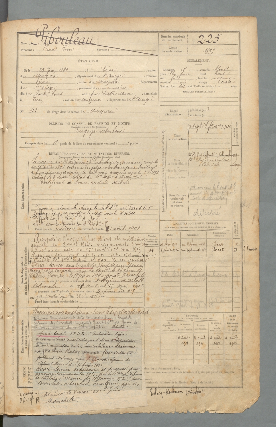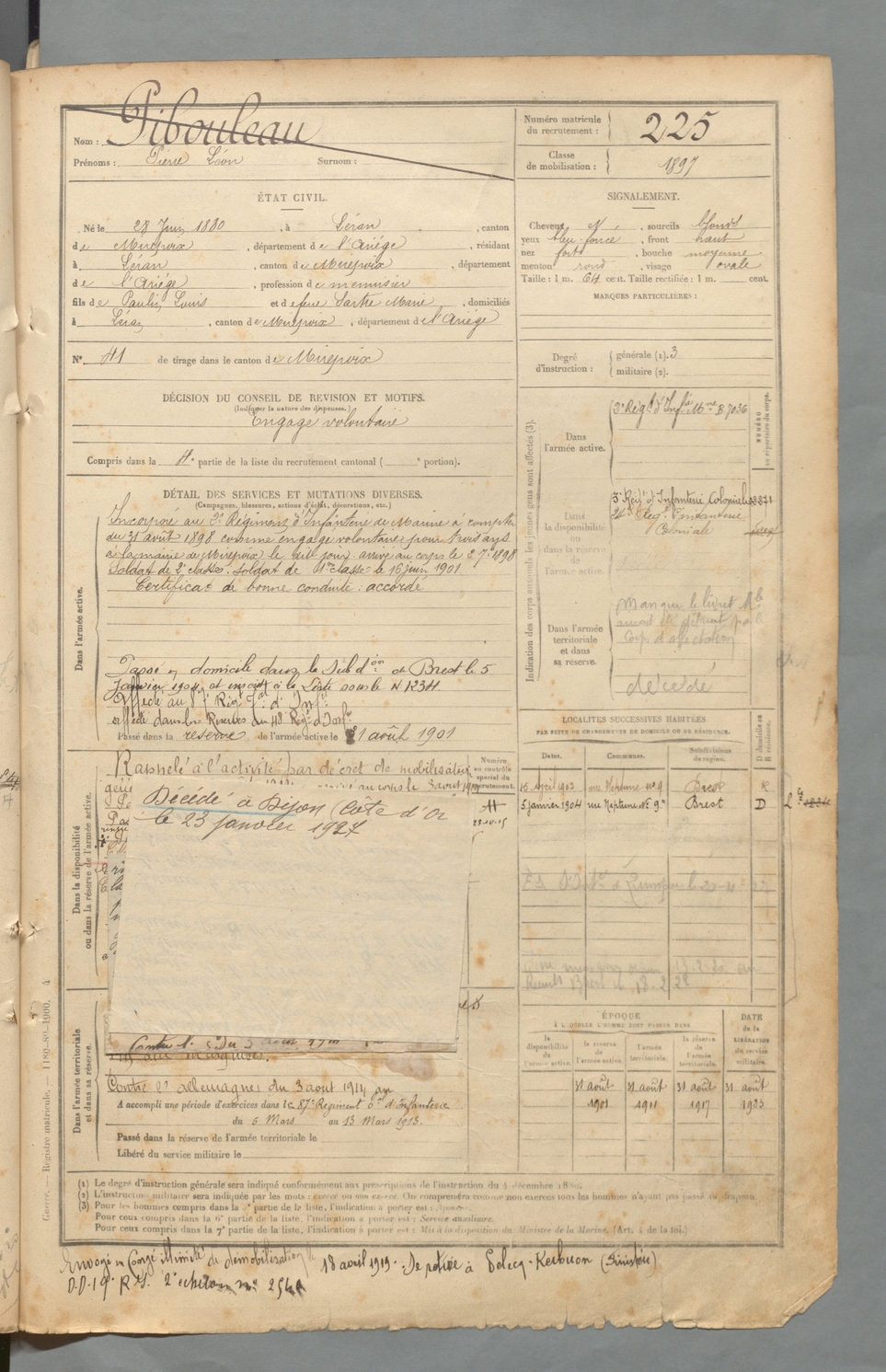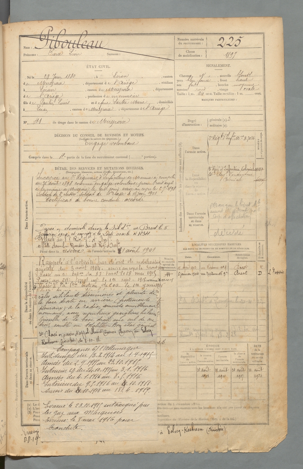 | Pibouleau | Pierre Léon | FOIX | 129 W 2 | 1900 | Léran | Léran | 225 |