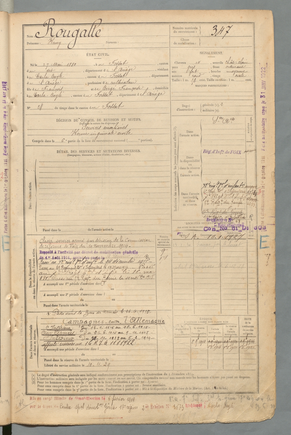 | Rougalle | Henry | FOIX | 129 W 2 | 1900 | Fossat (Le) | Carla-Bayle (Le) | 347 |