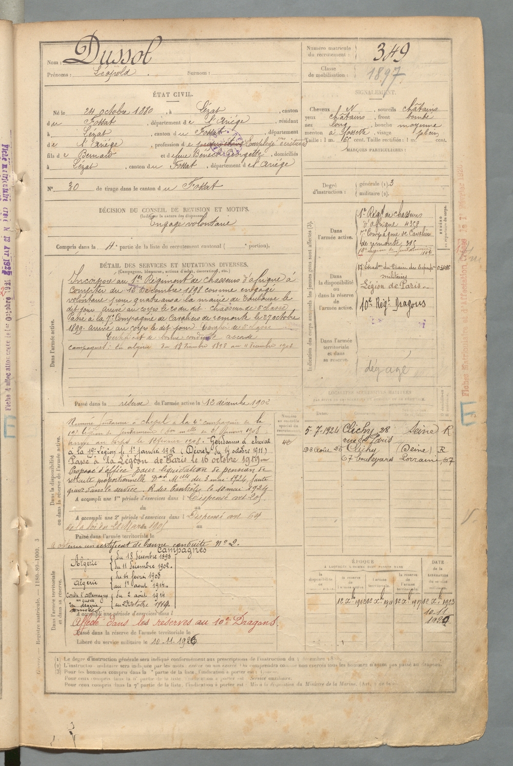 | Dussol | Léopold | FOIX | 129 W 2 | 1900 | Lézat-sur-Lèze | Lézat-sur-Lèze | 349 |