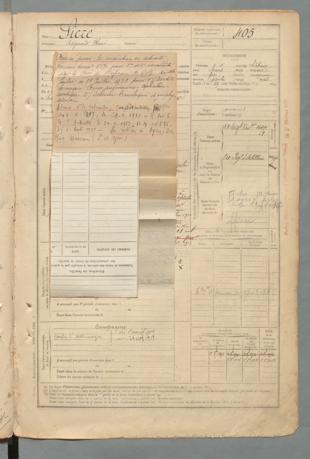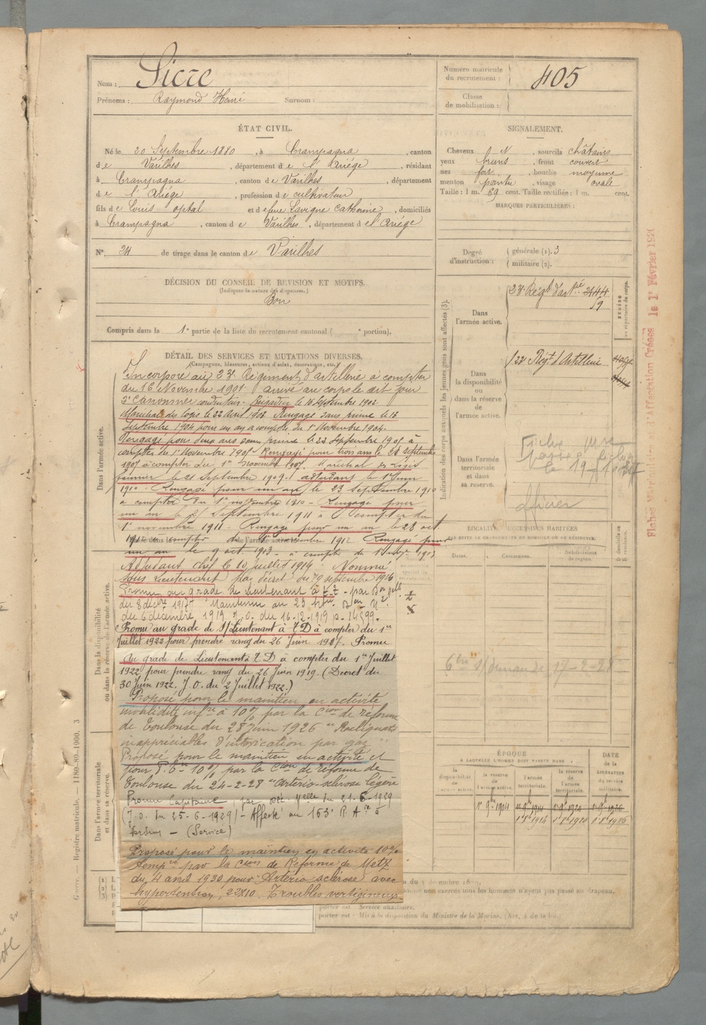 | Sicre | Raymond Henri | FOIX | 129 W 2 | 1900 | Crampagna | Crampagna | 405 |