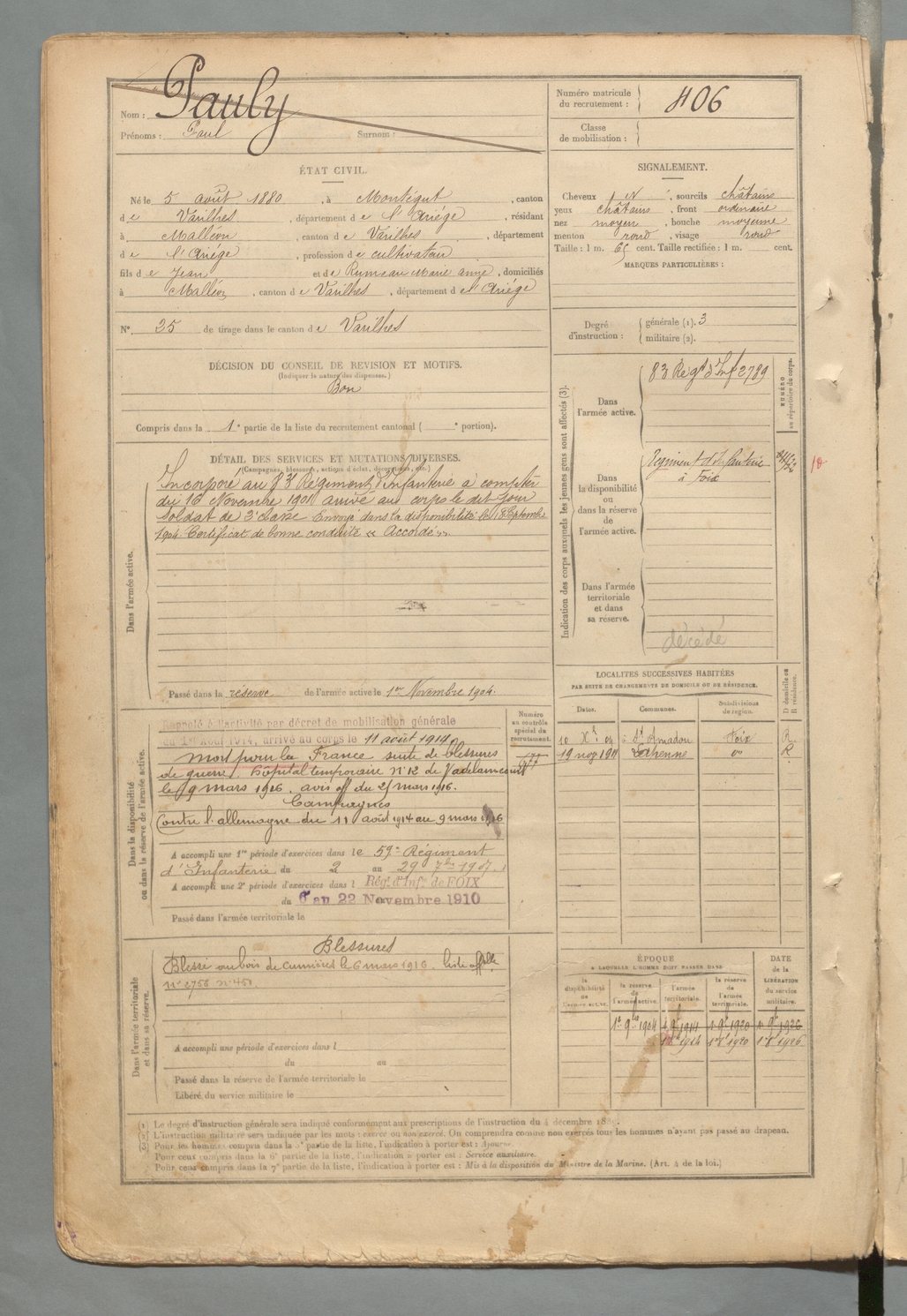 | Pauly | Paul | FOIX | 129 W 2 | 1900 | Montégut-Plantaurel | Malléon | 406 |