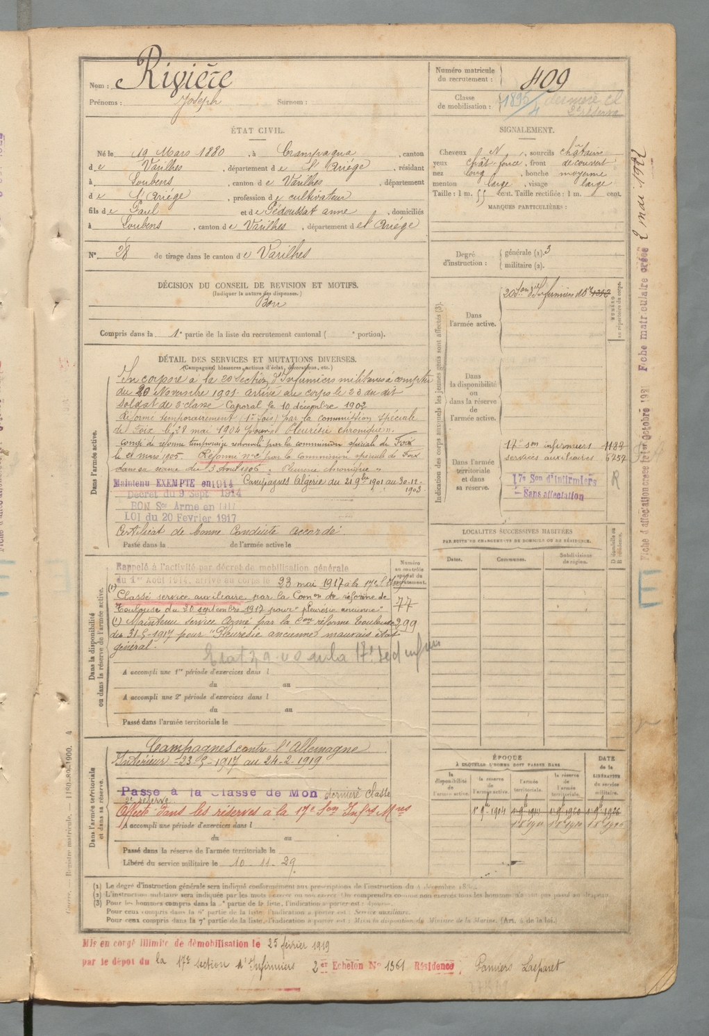 | Rivière | Joseph | FOIX | 129 W 2 | 1900 | Crampagna | Loubens | 409 |