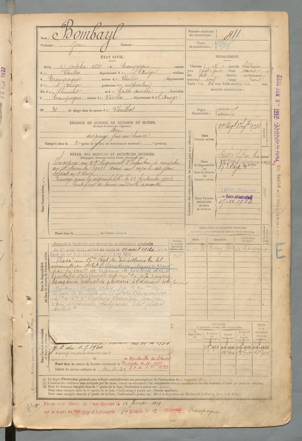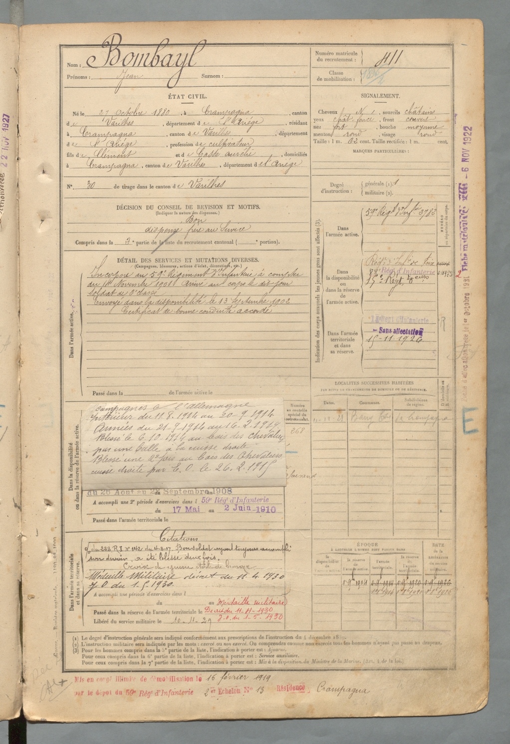 | Bombayl | Jean | FOIX | 129 W 2 | 1900 | Crampagna | Crampagna | 411 |