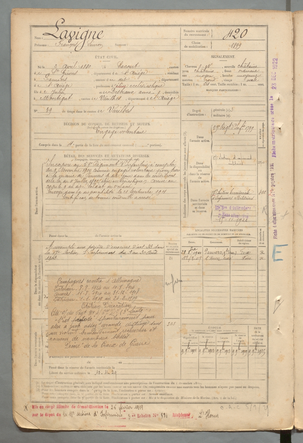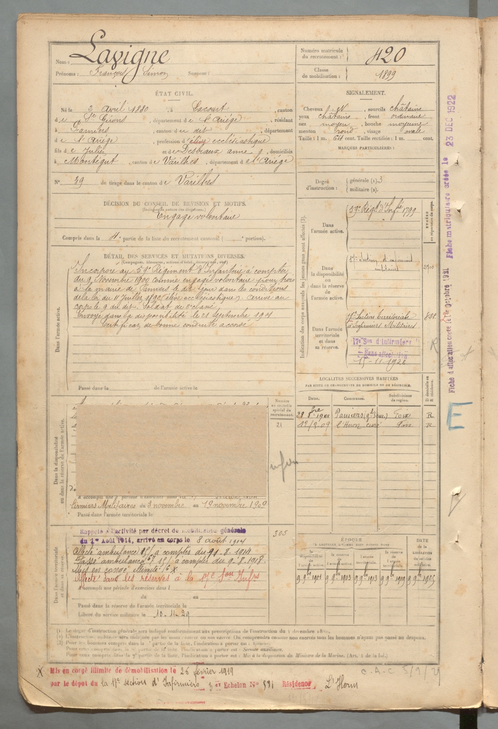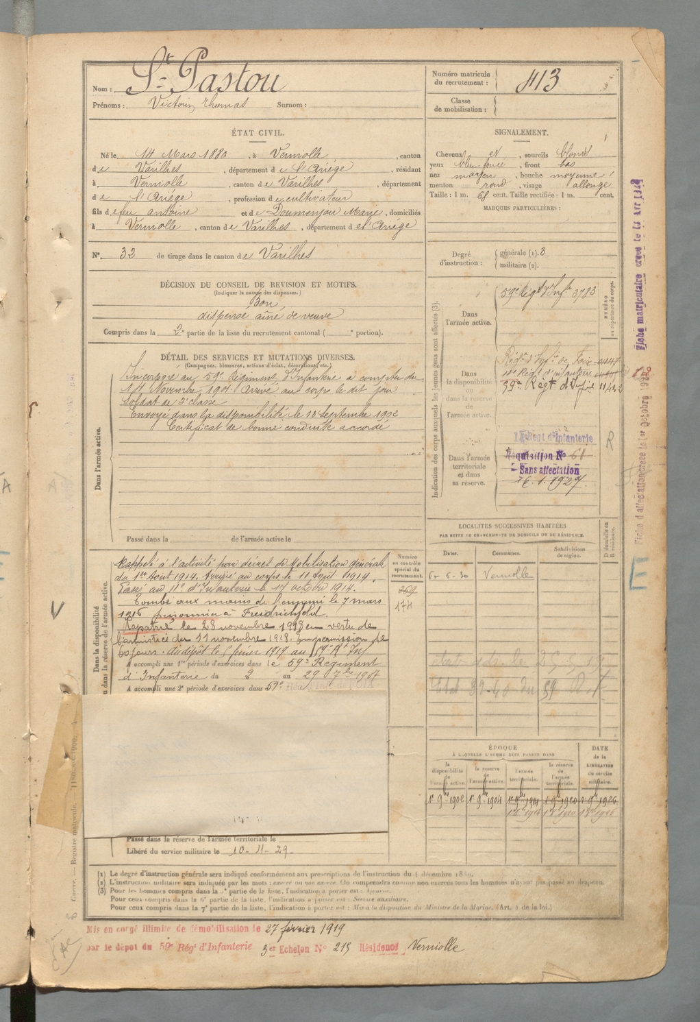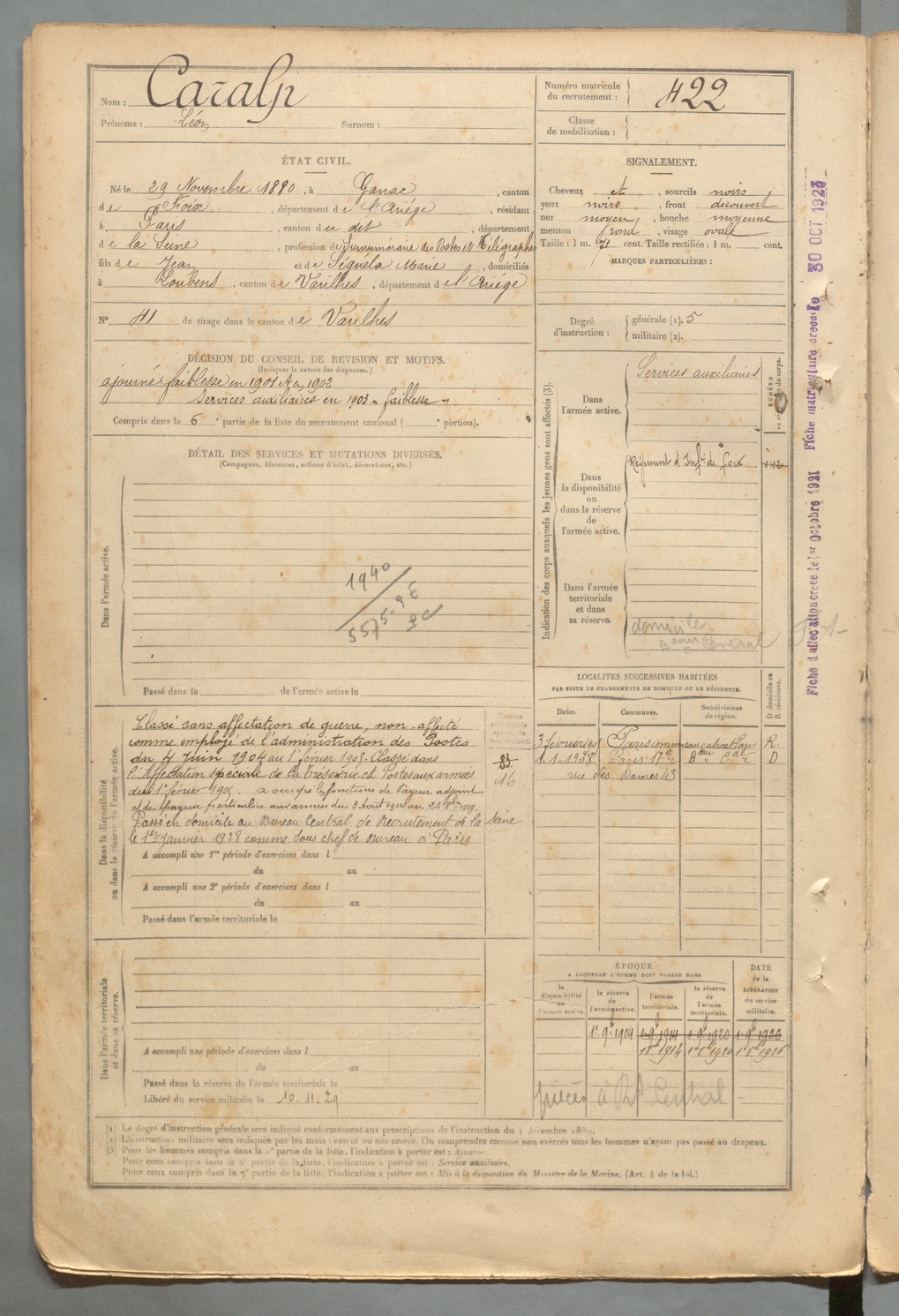 | Caralp | Léon | FOIX | 129 W 2 | 1900 | Ganac | Paris | 422 |