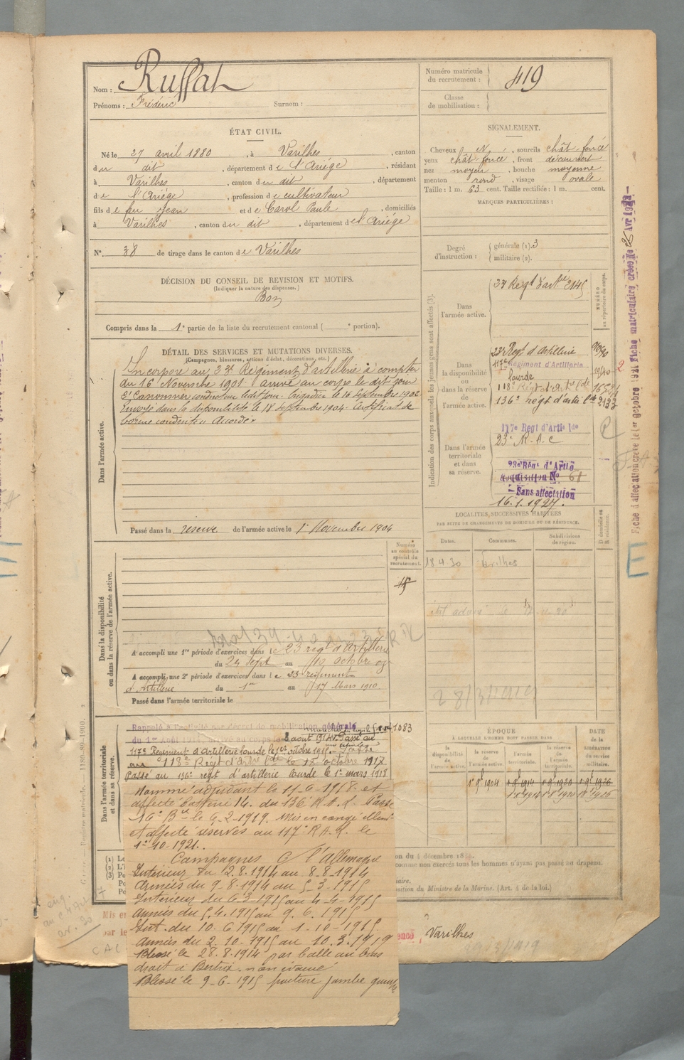 | Ruffat | Frédéric | FOIX | 129 W 2 | 1900 | Varilhes | Varilhes | 419 |