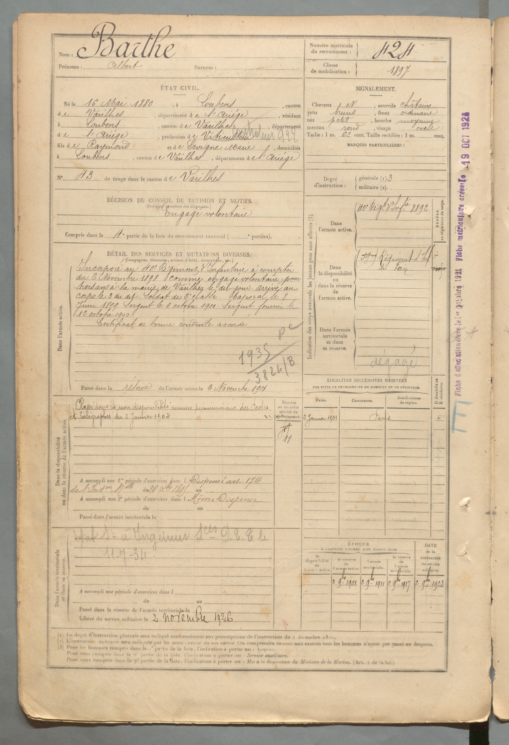 | Barthe | Albert | FOIX | 129 W 2 | 1900 | Loubens | Loubens | 424 |