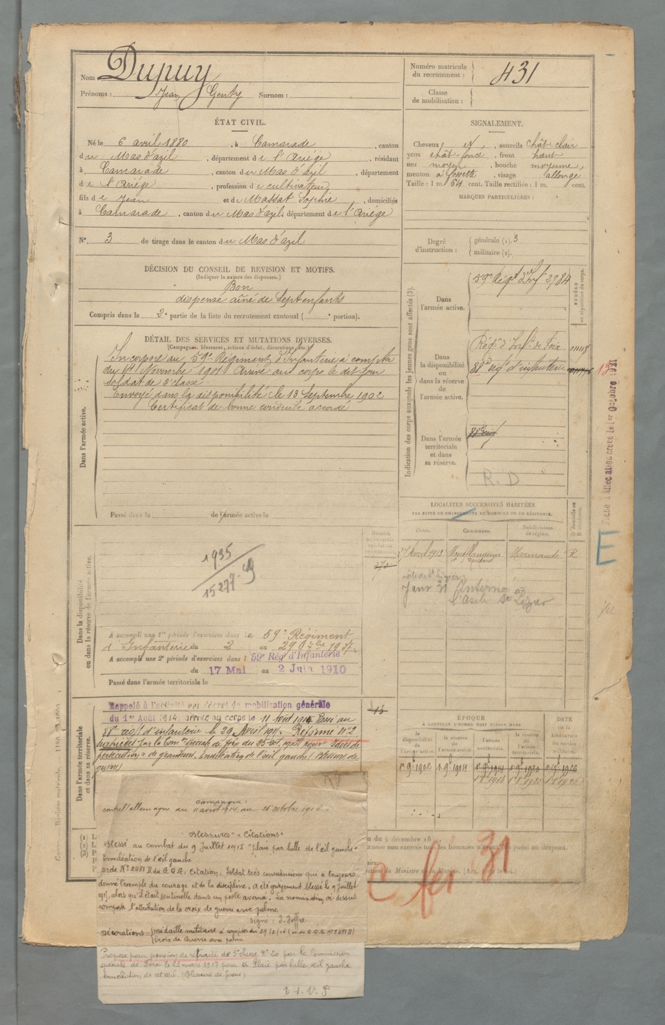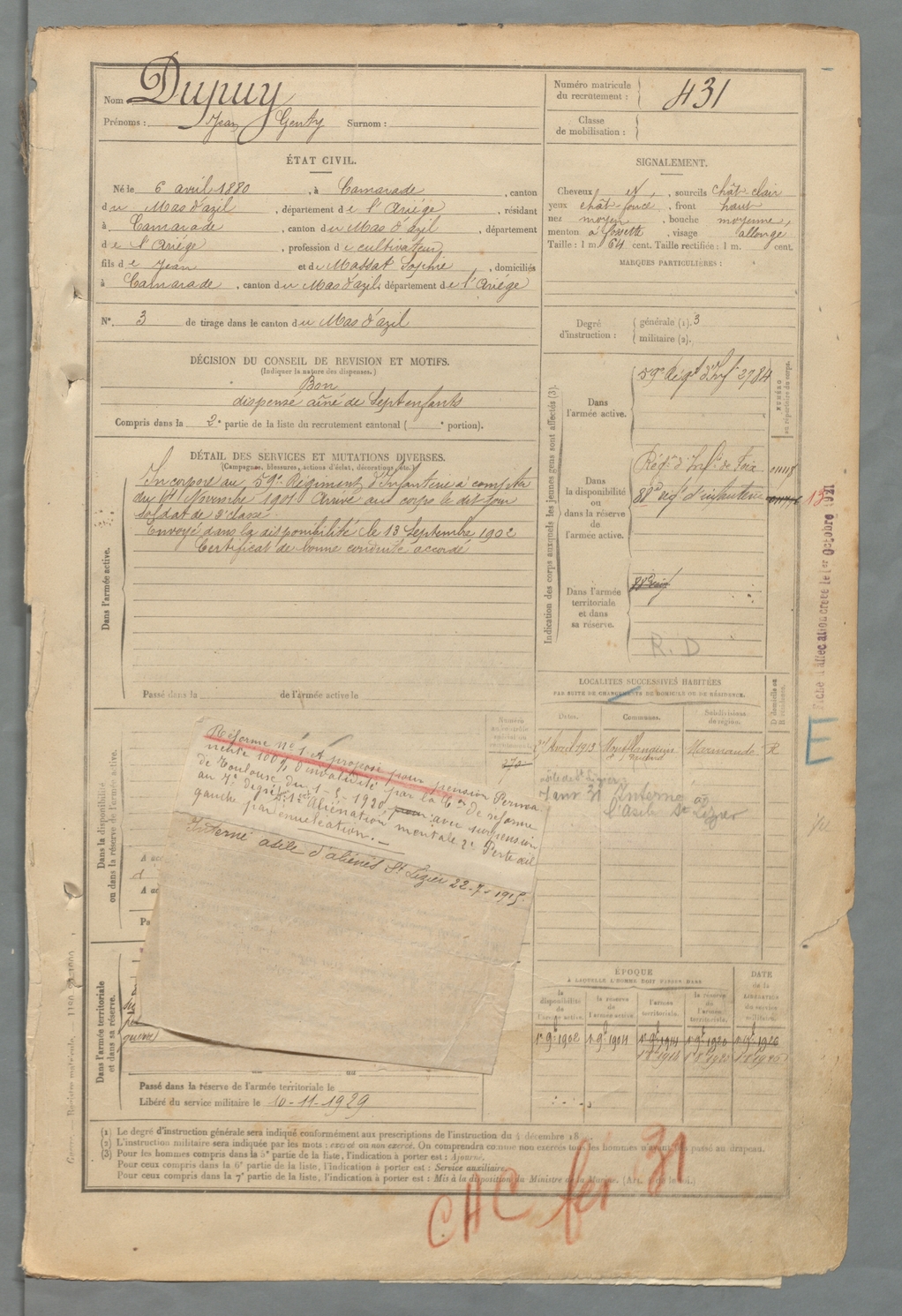 | Dupuy | Jean Genty | FOIX | 129 W 2 | 1900 | Camarade | Camarade | 431 |