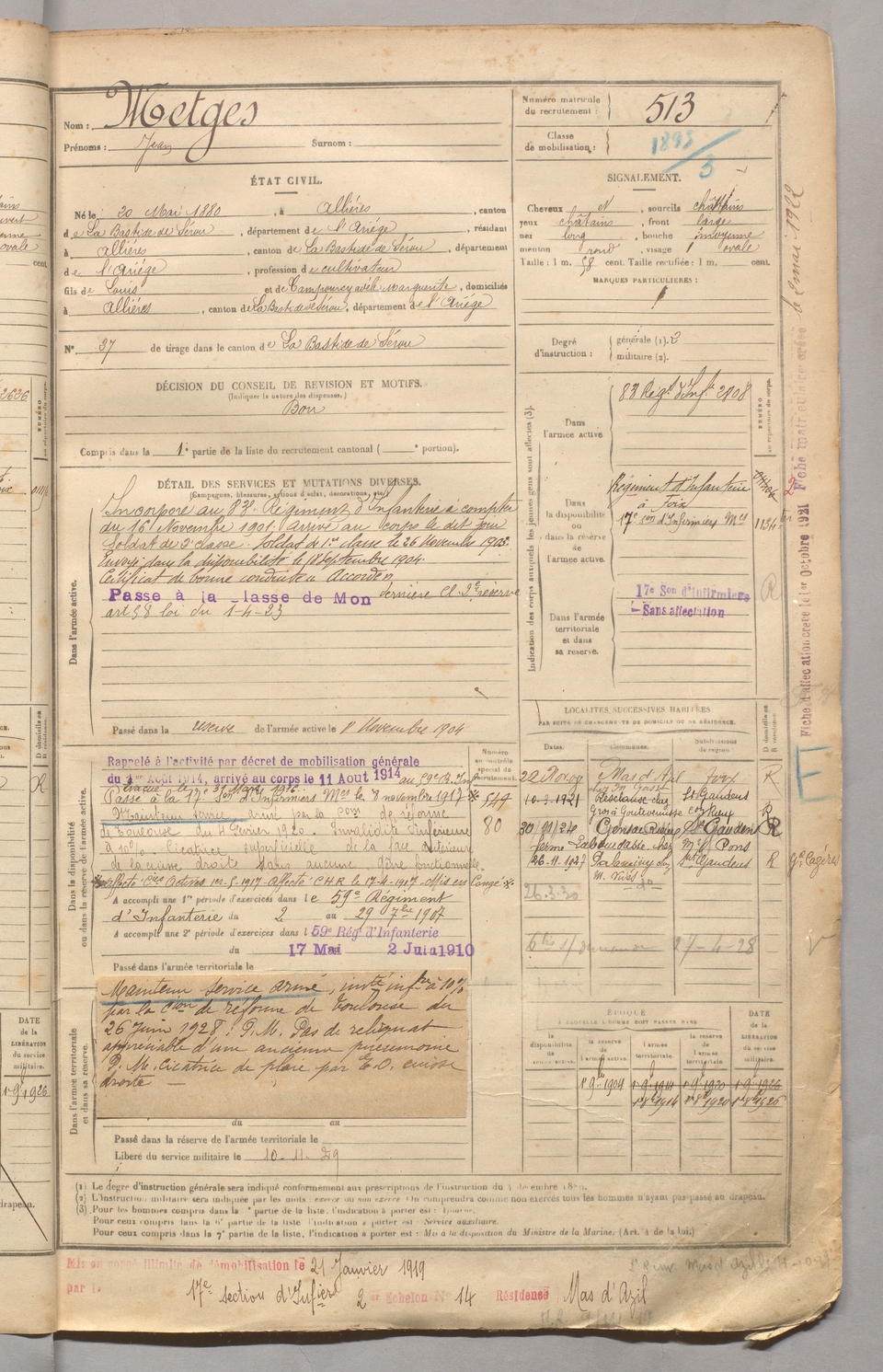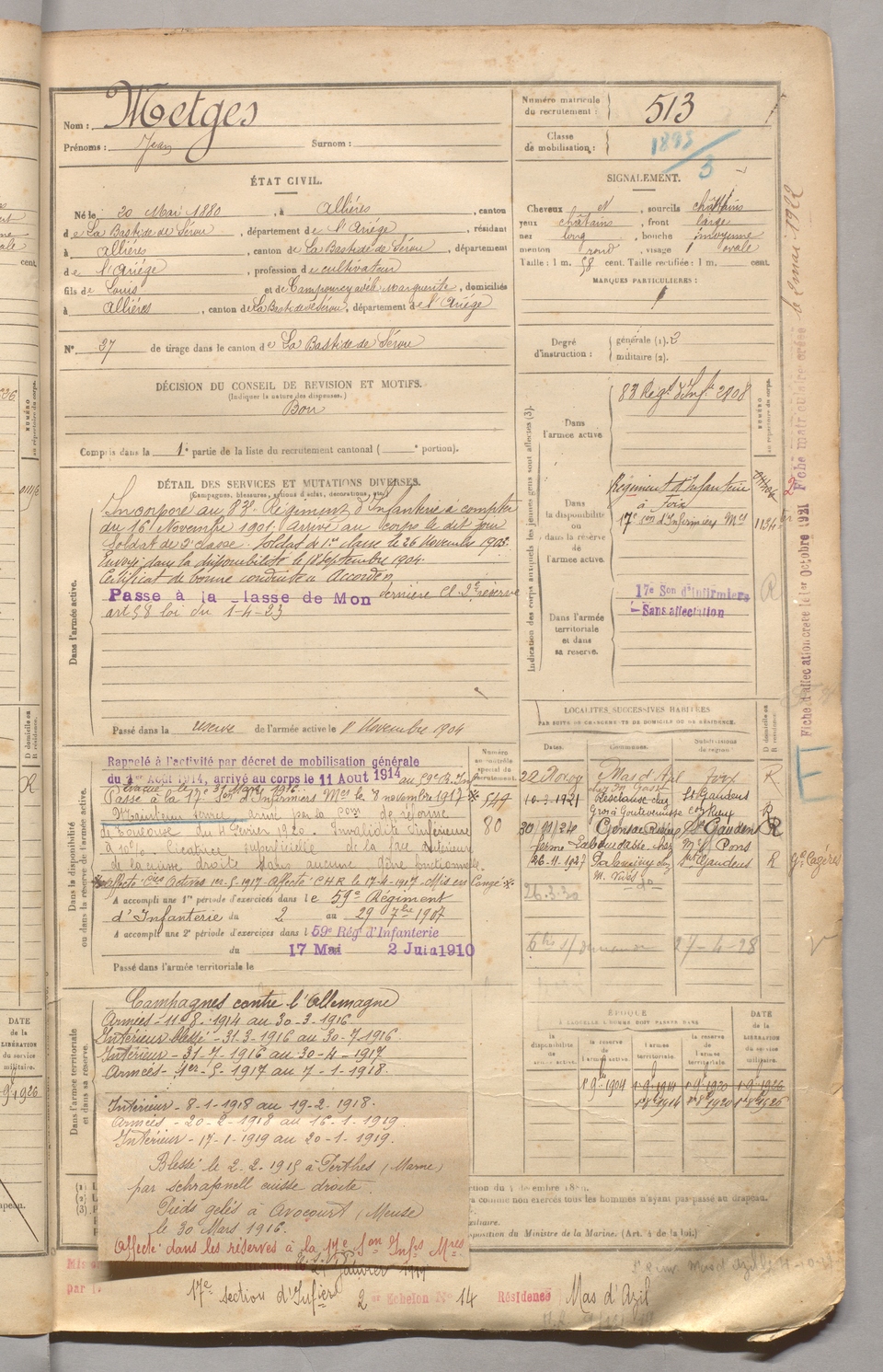 | Metges | Jean | FOIX | 129 W 3 | 1900 | Allières | Allières | 513 |