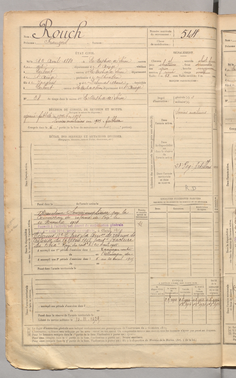 | Rouch | François | FOIX | 129 W 3 | 1900 | Bastide-de-Sérou (La) | Larbont | 514 |