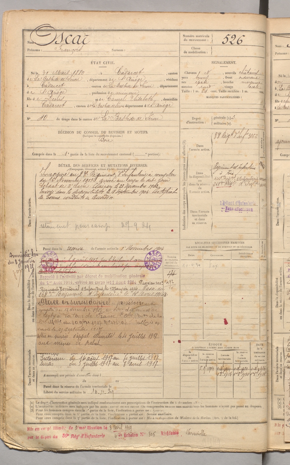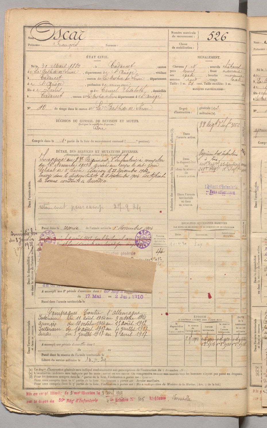 | Oscar | François | FOIX | 129 W 3 | 1900 | Cadarcet | Cadarcet | 526 |