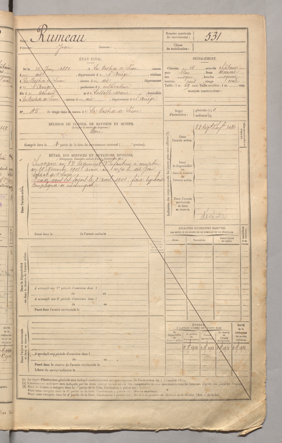 | Rumeau | Jean | FOIX | 129 W 3 | 1900 | Bastide-de-Sérou (La) | Bastide-de-Sérou (La) | 531 |