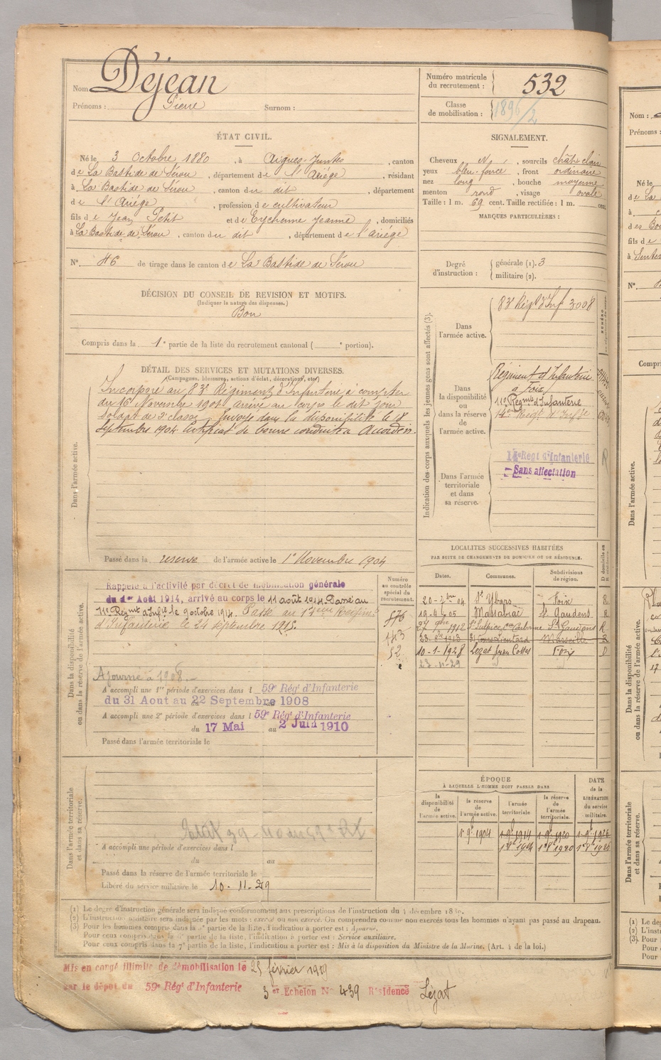 | Déjean | Pierre | FOIX | 129 W 3 | 1900 | Aigues-Juntes | Bastide-de-Sérou (La) | 532 |