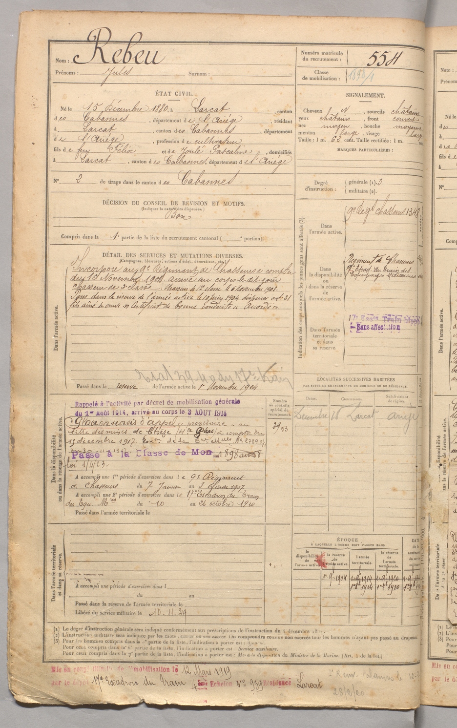 | Rebeu | Jules | FOIX | 129 W 3 | 1900 | Larcat | Larcat | 554 |