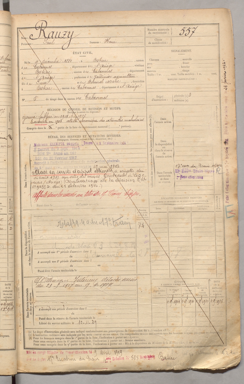 | Rauzy | Paul dit Henri | FOIX | 129 W 3 | 1900 | Bestiac | Bestiac | 557 |