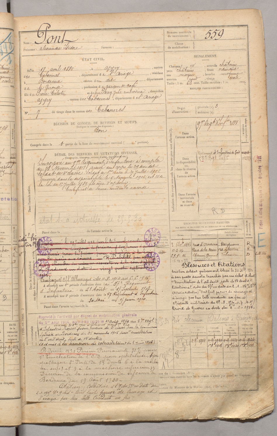 | Pont | Alexandre Isidore | FOIX | 129 W 3 | 1900 | Appy | Bordeaux | 559 |
