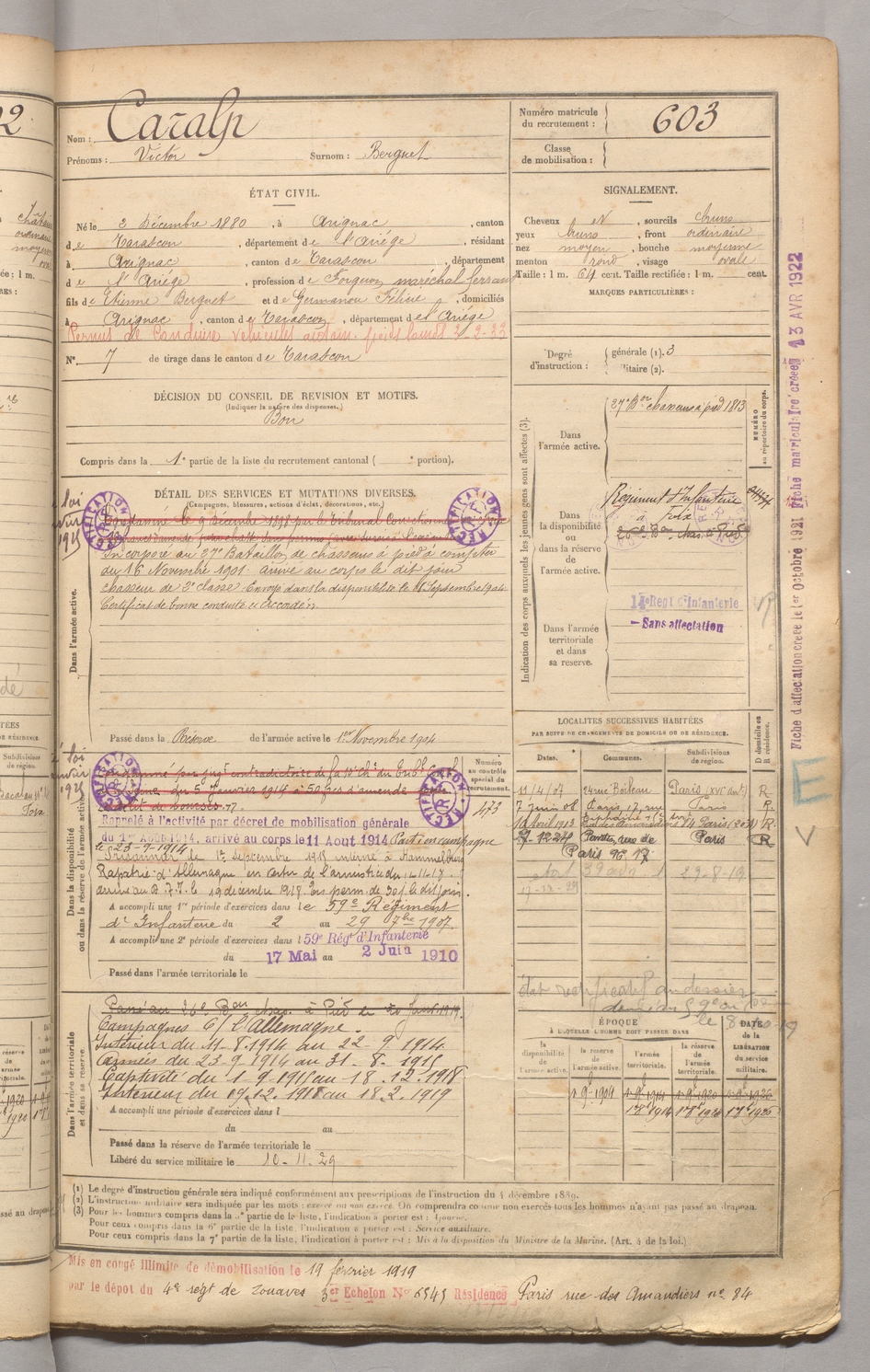 | Caralp | Victor dit Berguet | FOIX | 129 W 3 | 1900 | Arignac | Arignac | 603 |
