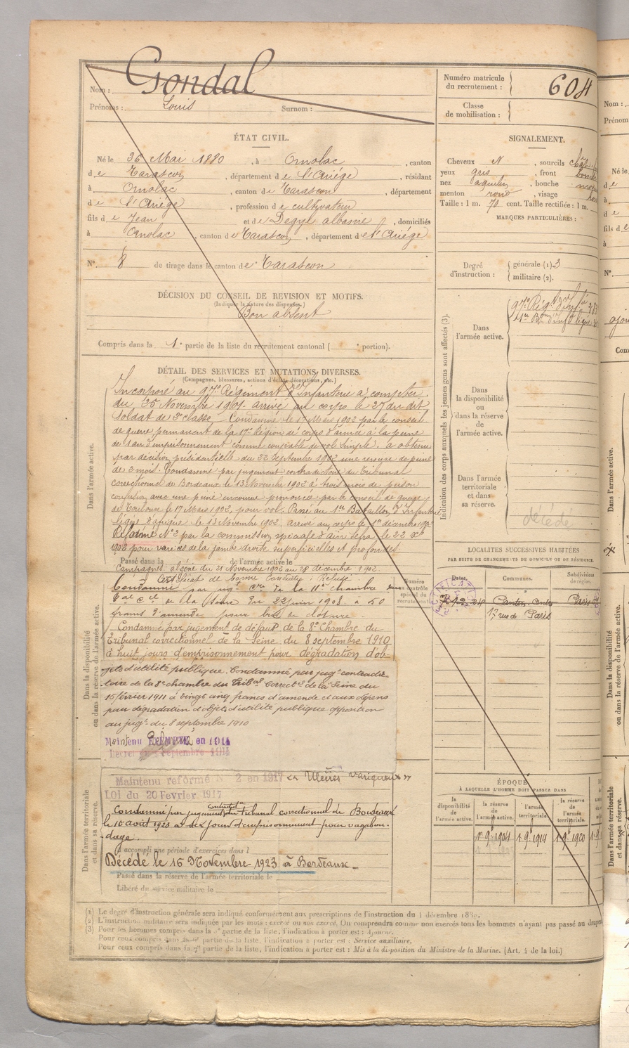 | Gondal | Louis | FOIX | 129 W 3 | 1900 | Ornolac-Ussat-les-Bains | Ornolac-Ussat-les-Bains | 604 |