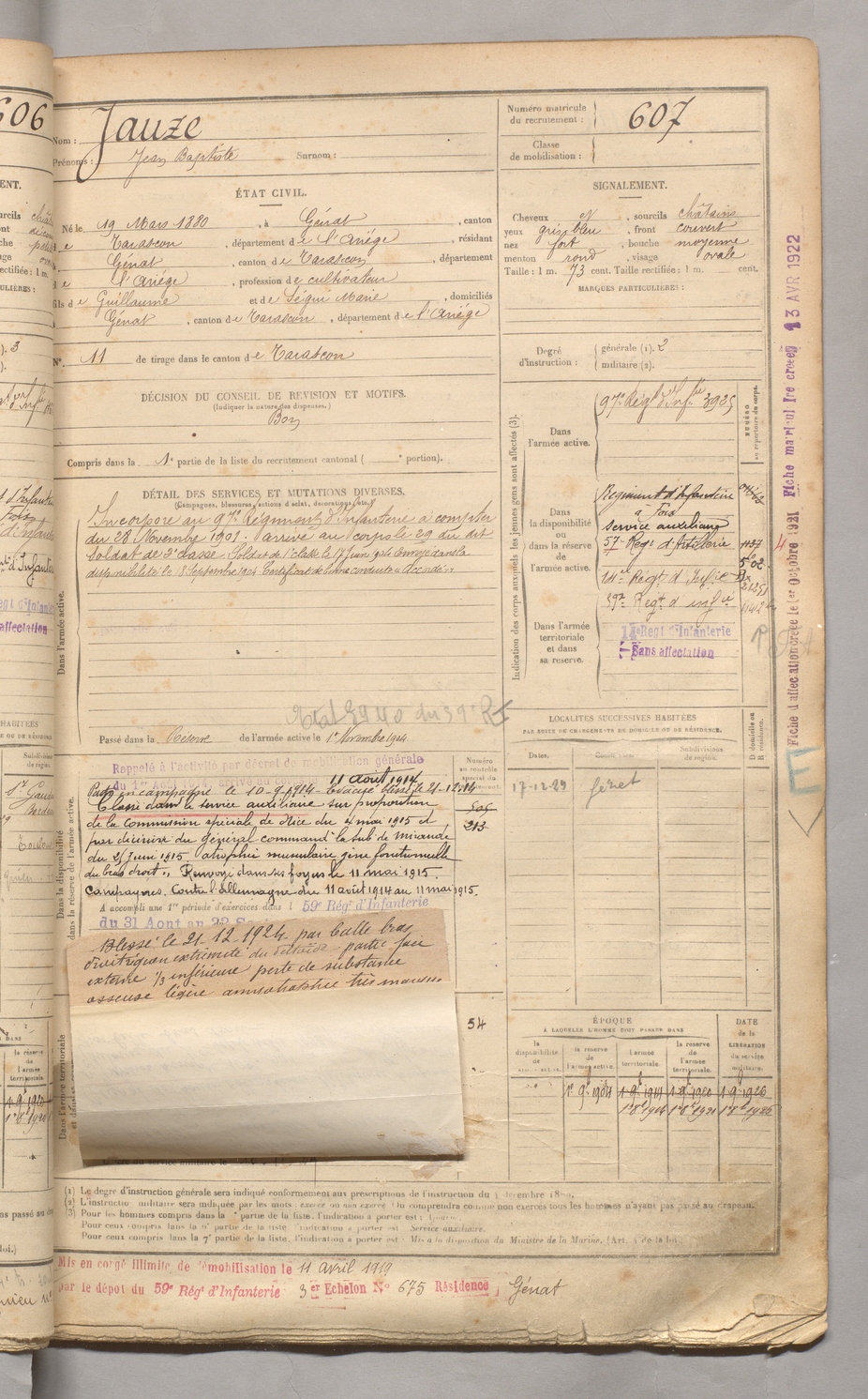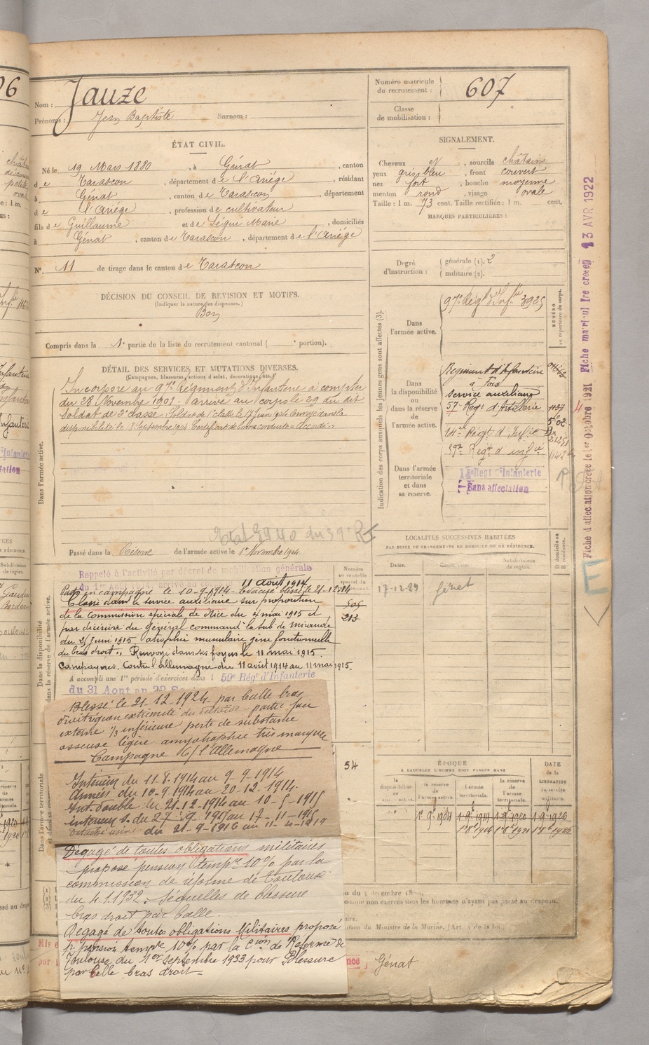 | Jauze | Jean Baptiste | FOIX | 129 W 3 | 1900 | Génat | Génat | 607 |