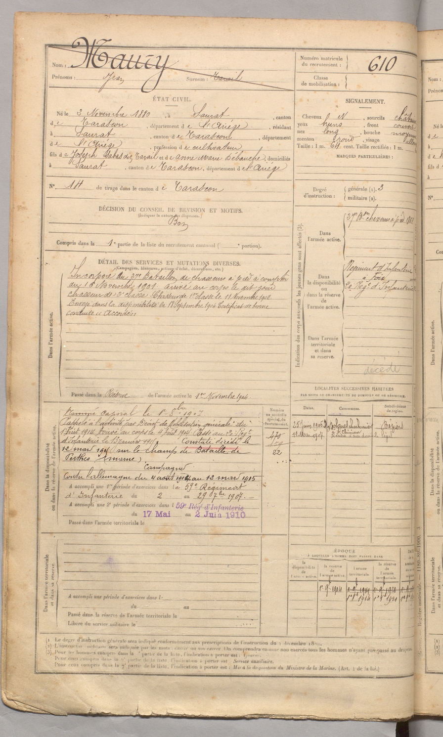 | Maury | Jean dit Tarail | FOIX | 129 W 3 | 1900 | Saurat | Saurat | 610 |