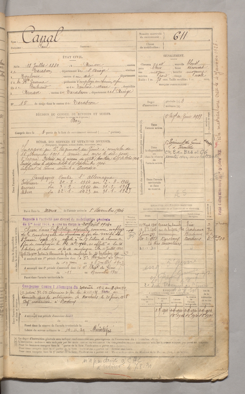 | Canal | Paul | FOIX | 129 W 3 | 1900 | Arnave | Toulouse | 611 |