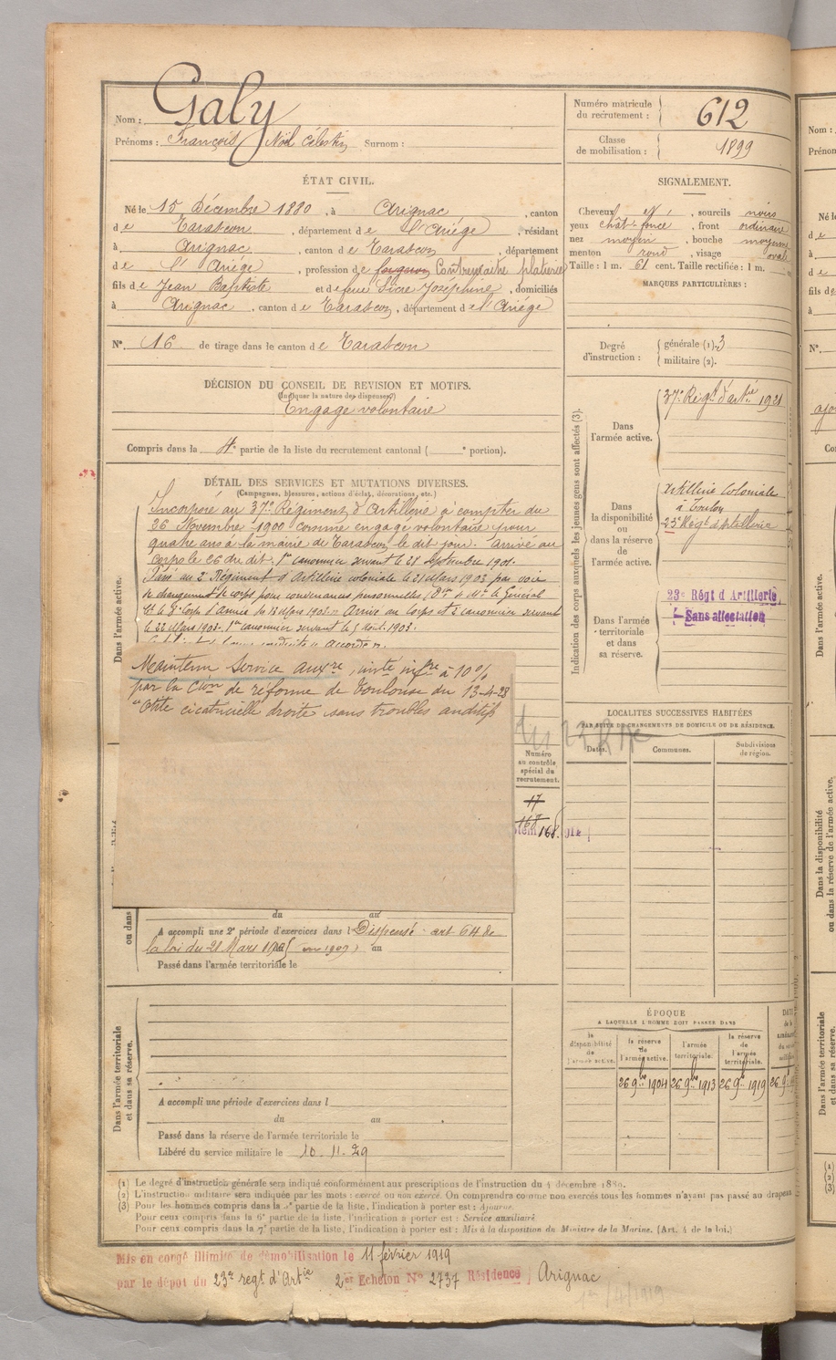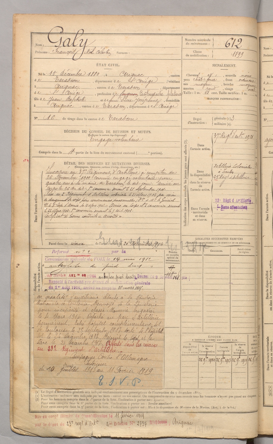 | Galy | François Noël Célestin | FOIX | 129 W 3 | 1900 | Arignac | Arignac | 612 |