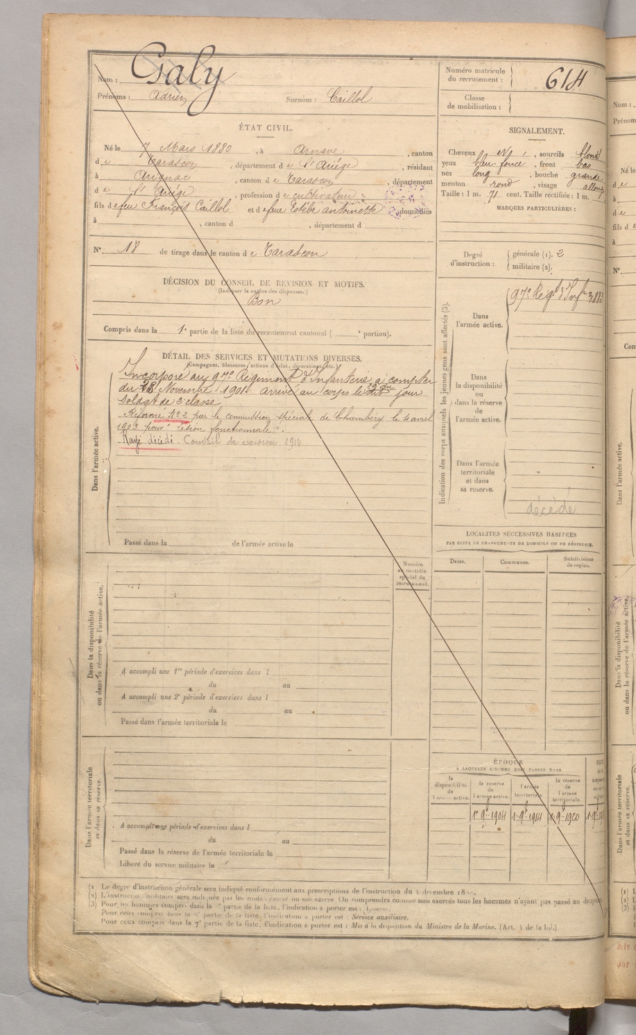 | Galy | Adrien dit Caillol | FOIX | 129 W 3 | 1900 | Arnave | Arignac | 614 |