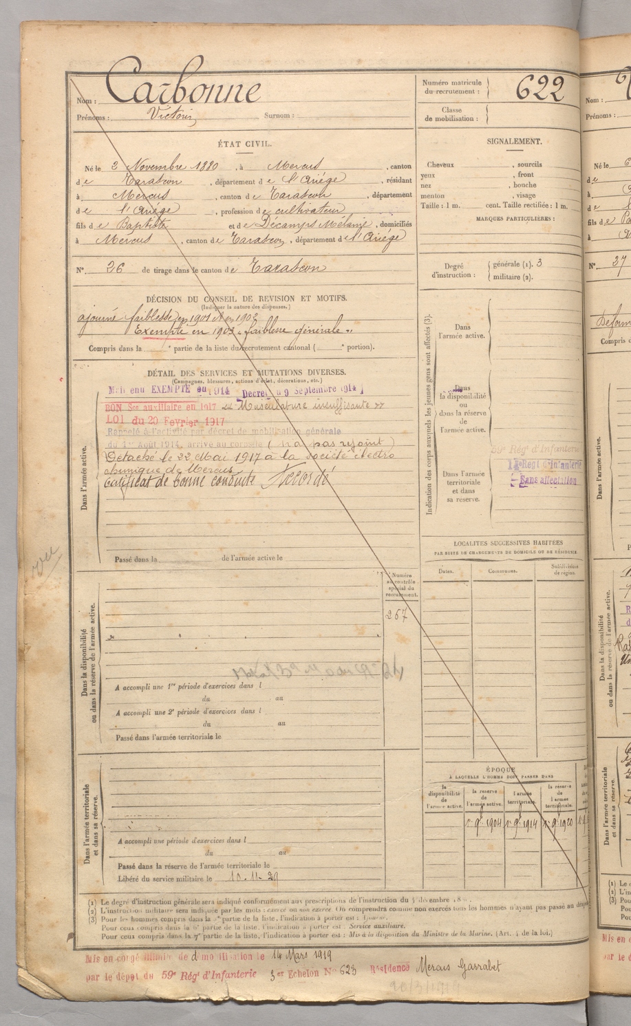 | Carbonne | Victorin | FOIX | 129 W 3 | 1900 | Mercus-Garrabet | Mercus-Garrabet | 622 |