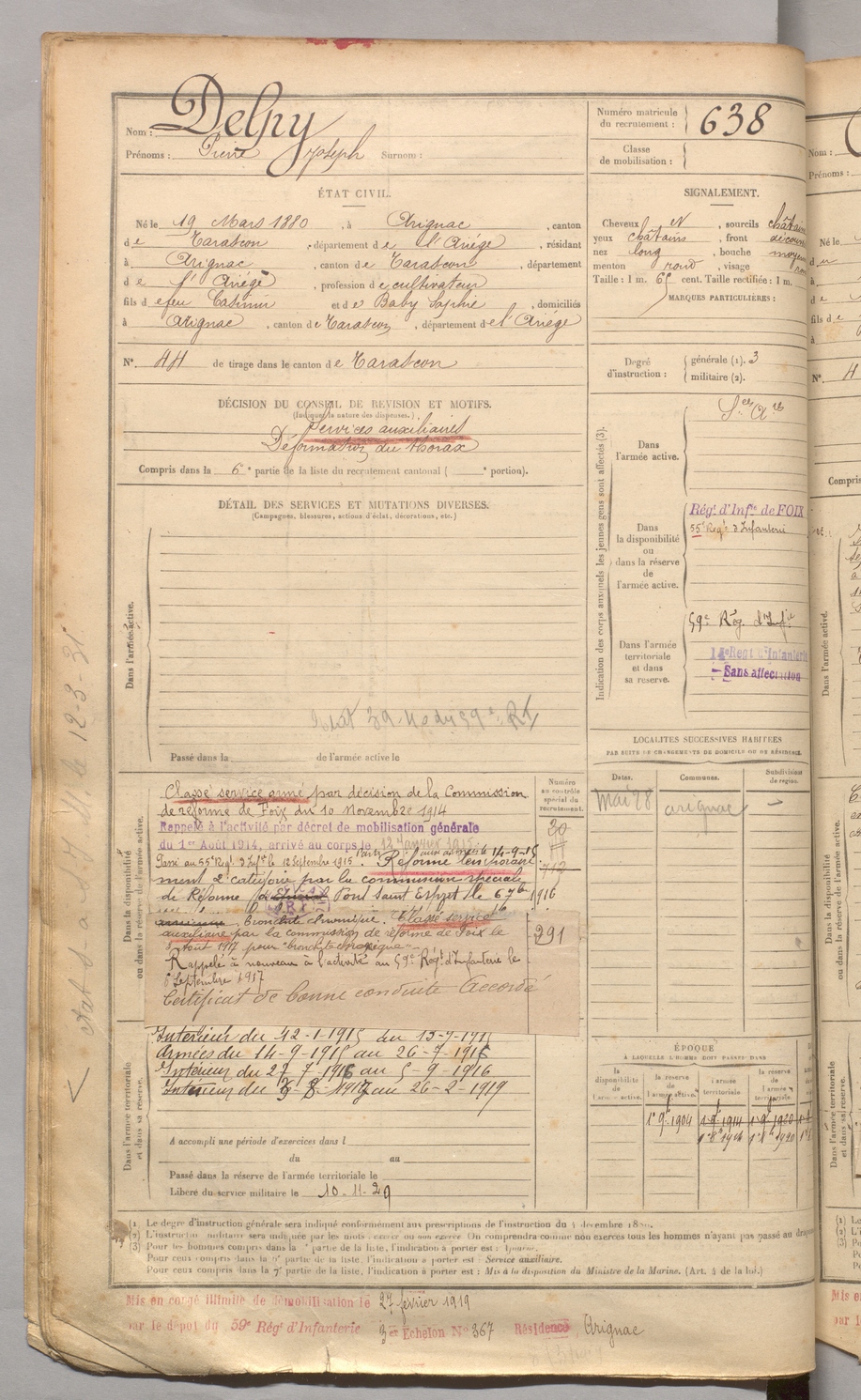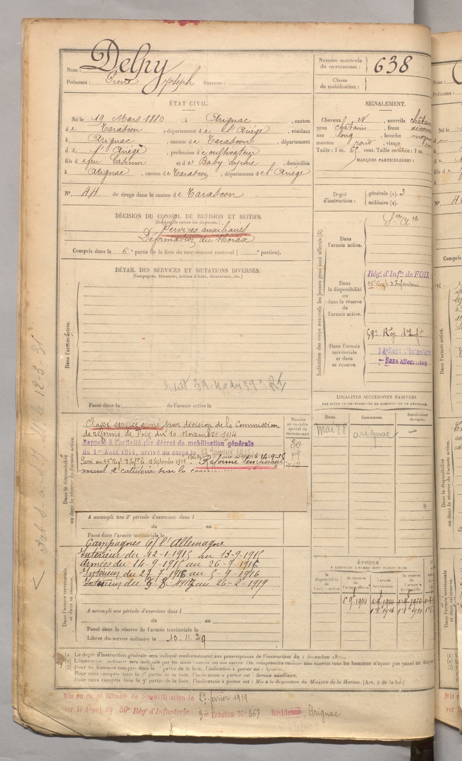 | Delpy | Pierre Joseph | FOIX | 129 W 3 | 1900 | Arignac | Arignac | 638 |