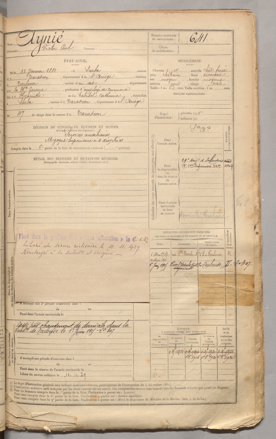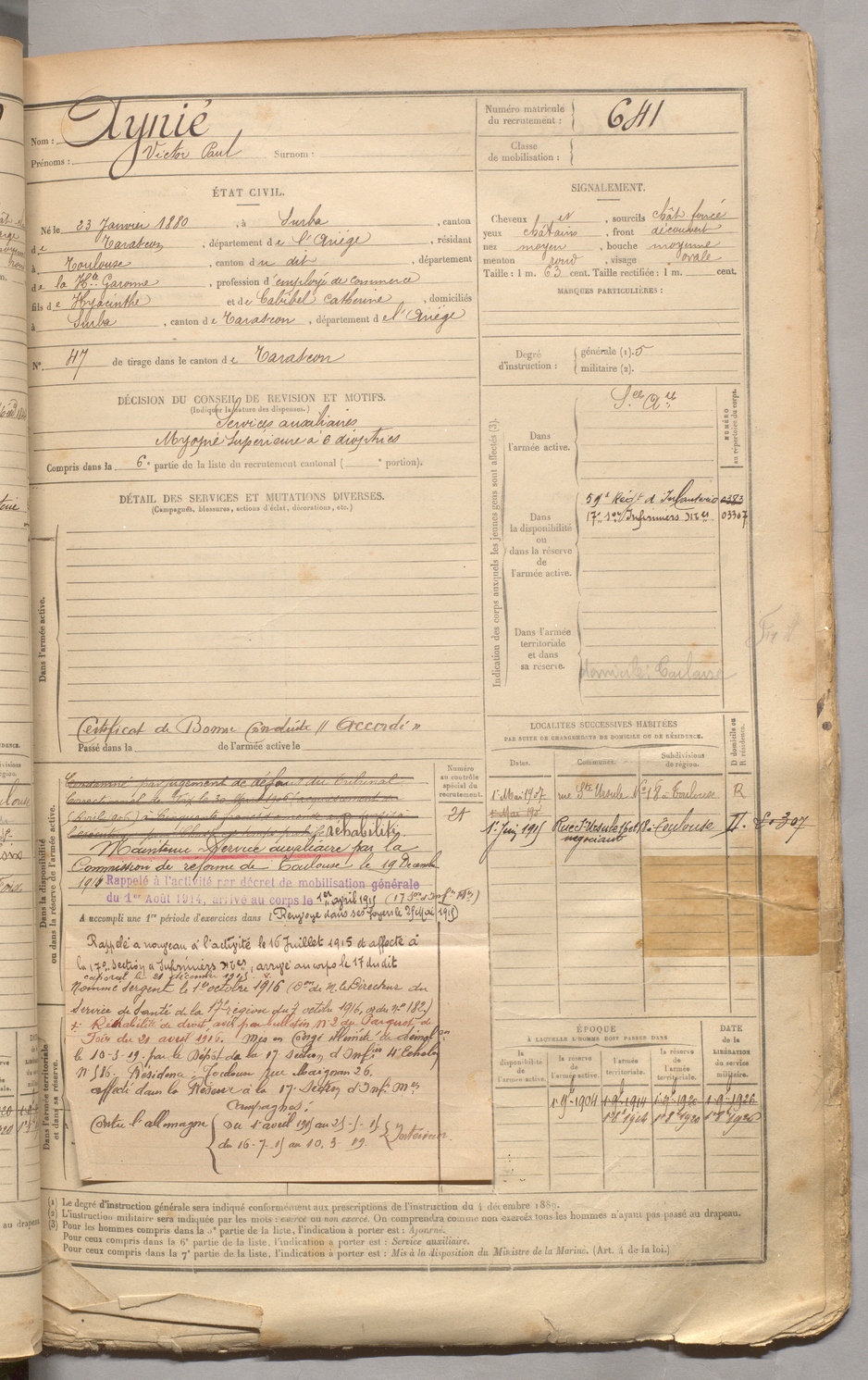 | Aynié | Victor Paul | FOIX | 129 W 3 | 1900 | Surba | Toulouse | 641 |