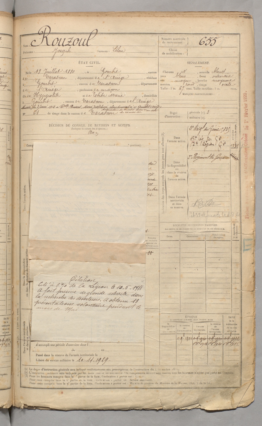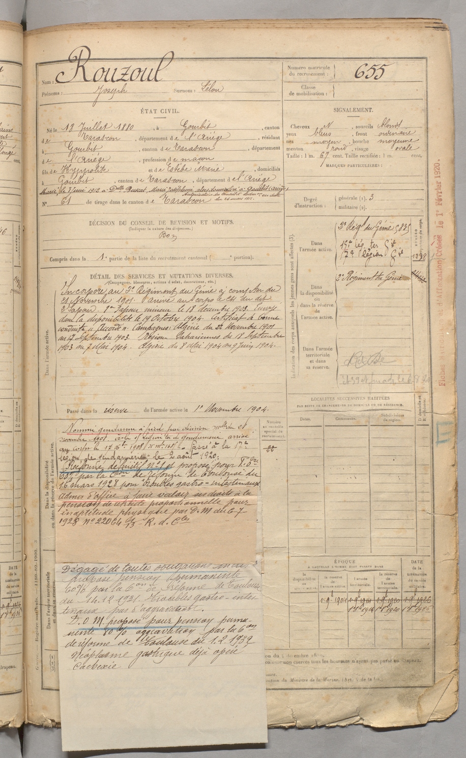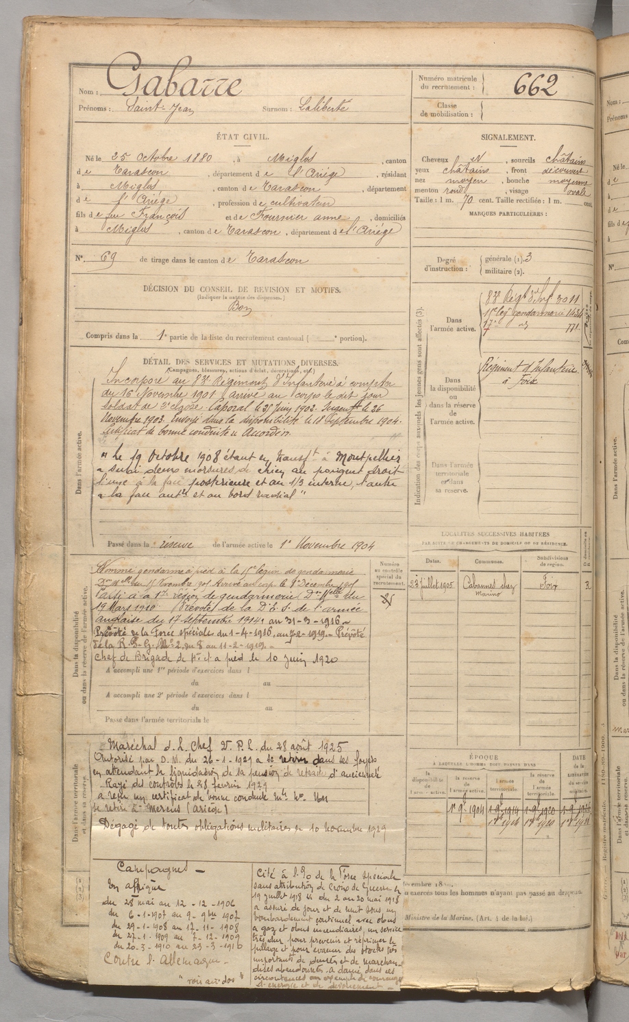 | Rouzoul | Joseph dit Lélou | FOIX | 129 W 3 | 1900 | Gourbit | Gourbit | 655 |