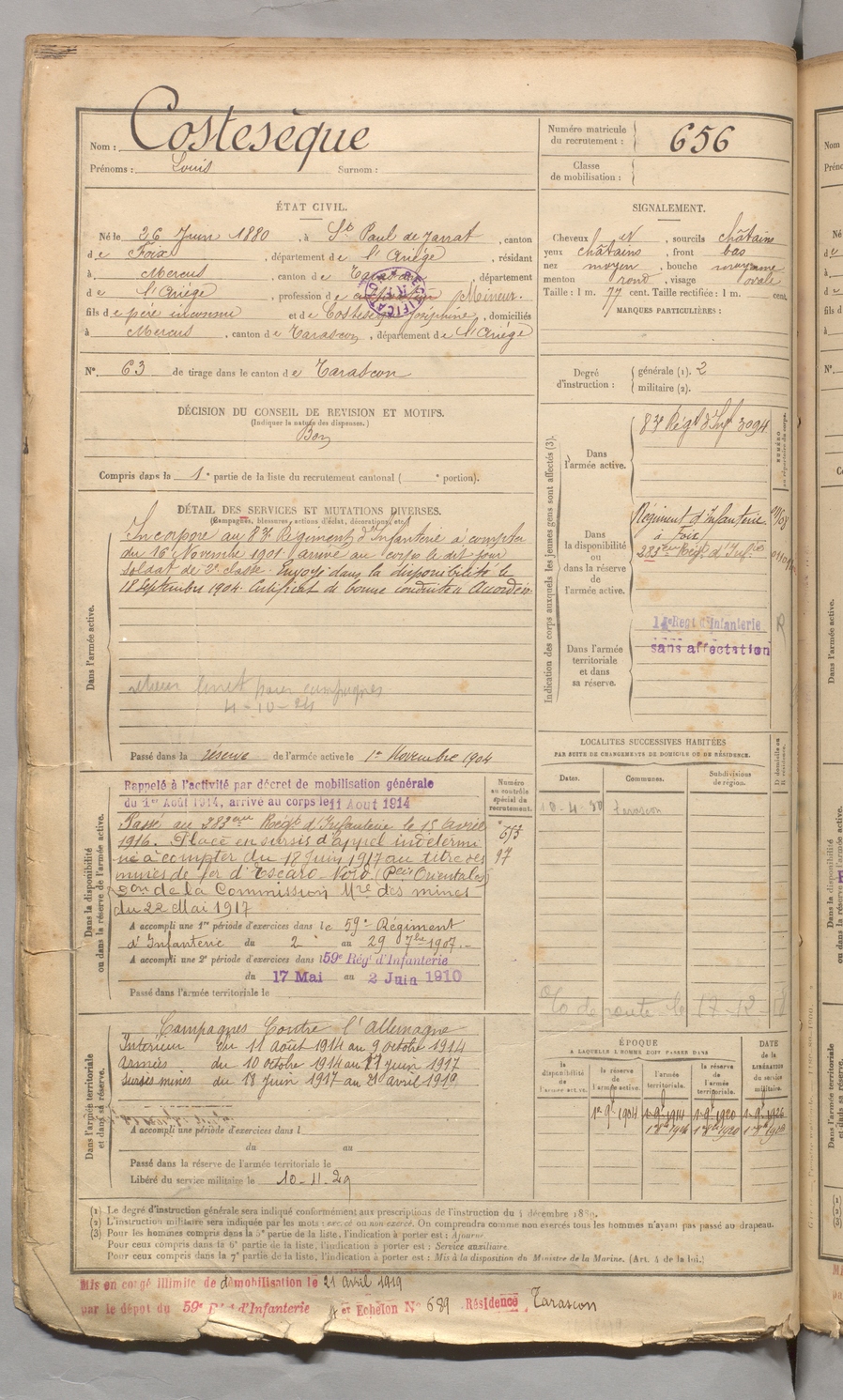 | Costesèque | Louis | FOIX | 129 W 3 | 1900 | Saint-Paul-de-Jarrat | Mercus-Garrabet | 656 |