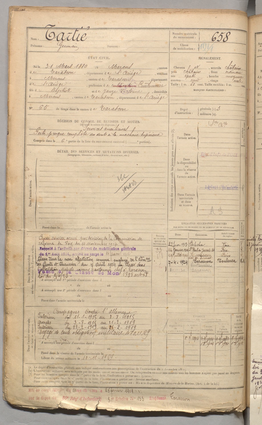 | Tartié | Germain | FOIX | 129 W 3 | 1900 | Mercus-Garrabet | Mercus-Garrabet | 658 |