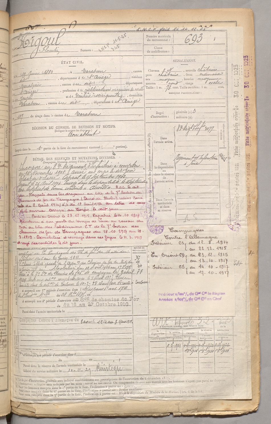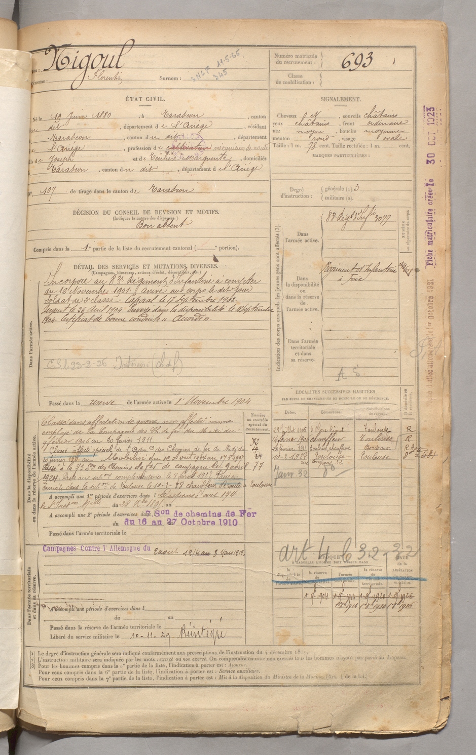 | Nigoul | Florentin | FOIX | 129 W 3 | 1900 | Tarascon | Tarascon | 693 |