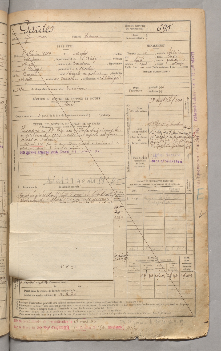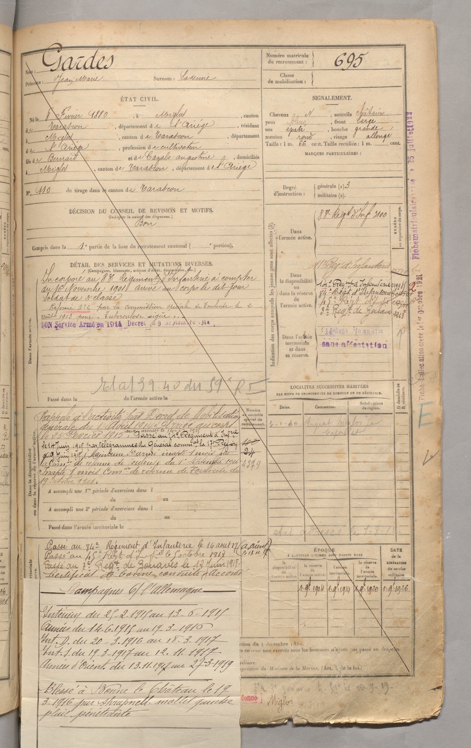 | Gardes | Jean Marie dit Ladenne | FOIX | 129 W 3 | 1900 | Miglos | Miglos | 695 |