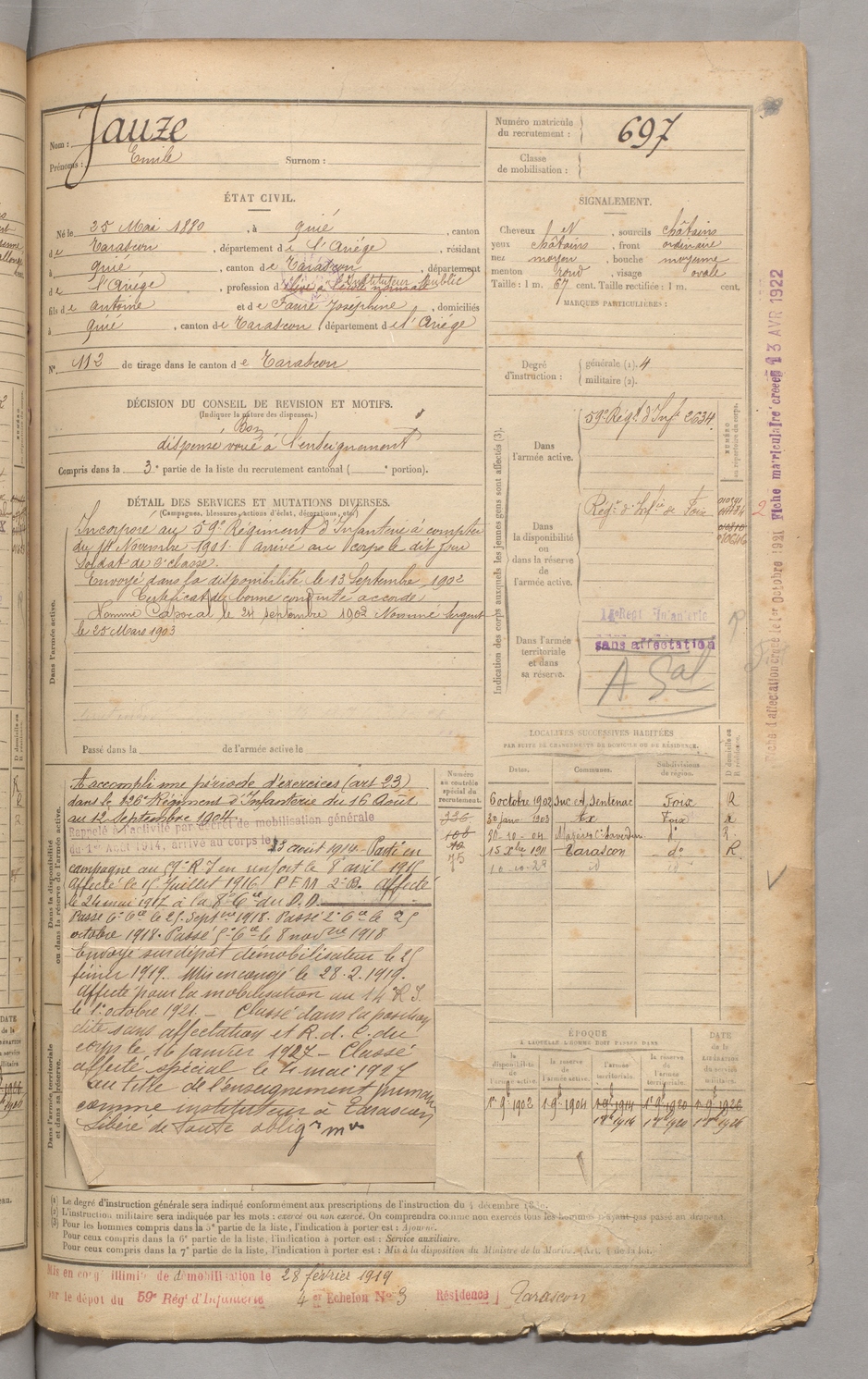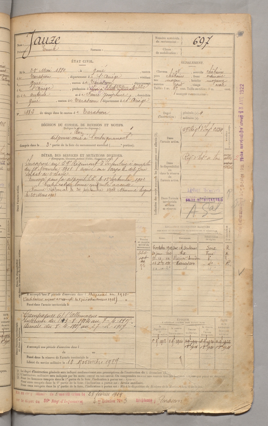 | Jauze | Emile | FOIX | 129 W 3 | 1900 | Quié | Quié | 697 |